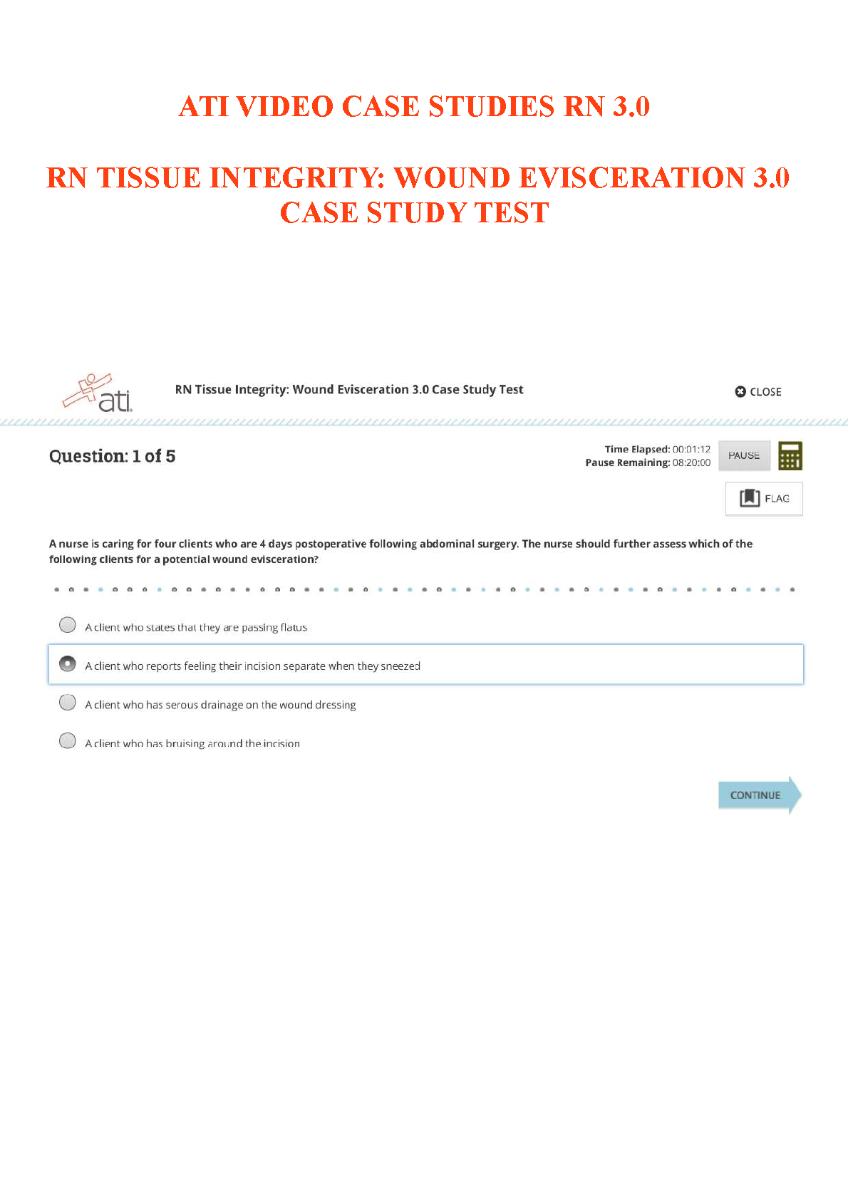 ATI RN Video Case Studies 3.0: RN Tissue Integrity: Wound Evisceration - Case Study Test