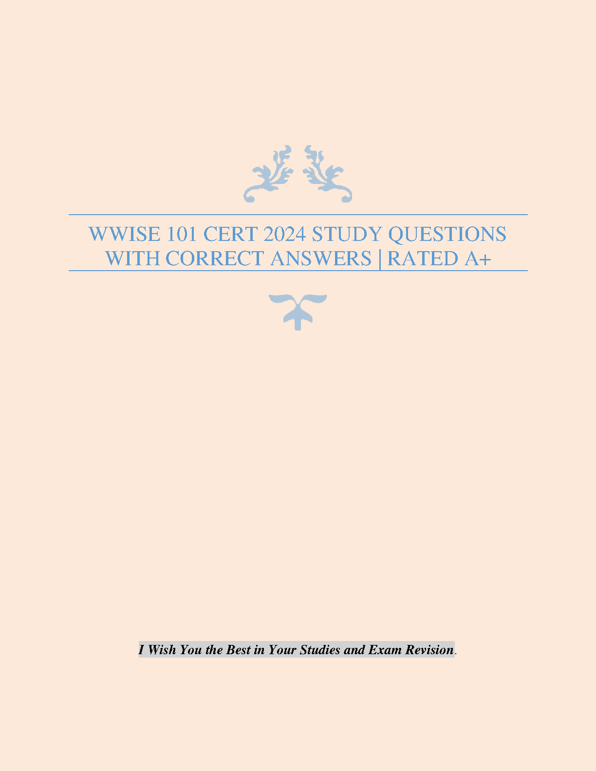 Conquer the WWISE 101 CERT exam with confidence! This comprehensive study guide provides 2024 study questions with correct answers, ensuring you're well-prepared for exam day. Achieve an A+ and avoid resits – your path to success starts here.