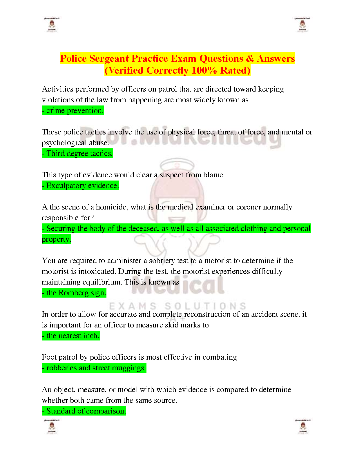 Police Sergeant Practice Exam Questions & Answers 2024/2025 Edition: Ace Your Exam on the First Attempt!