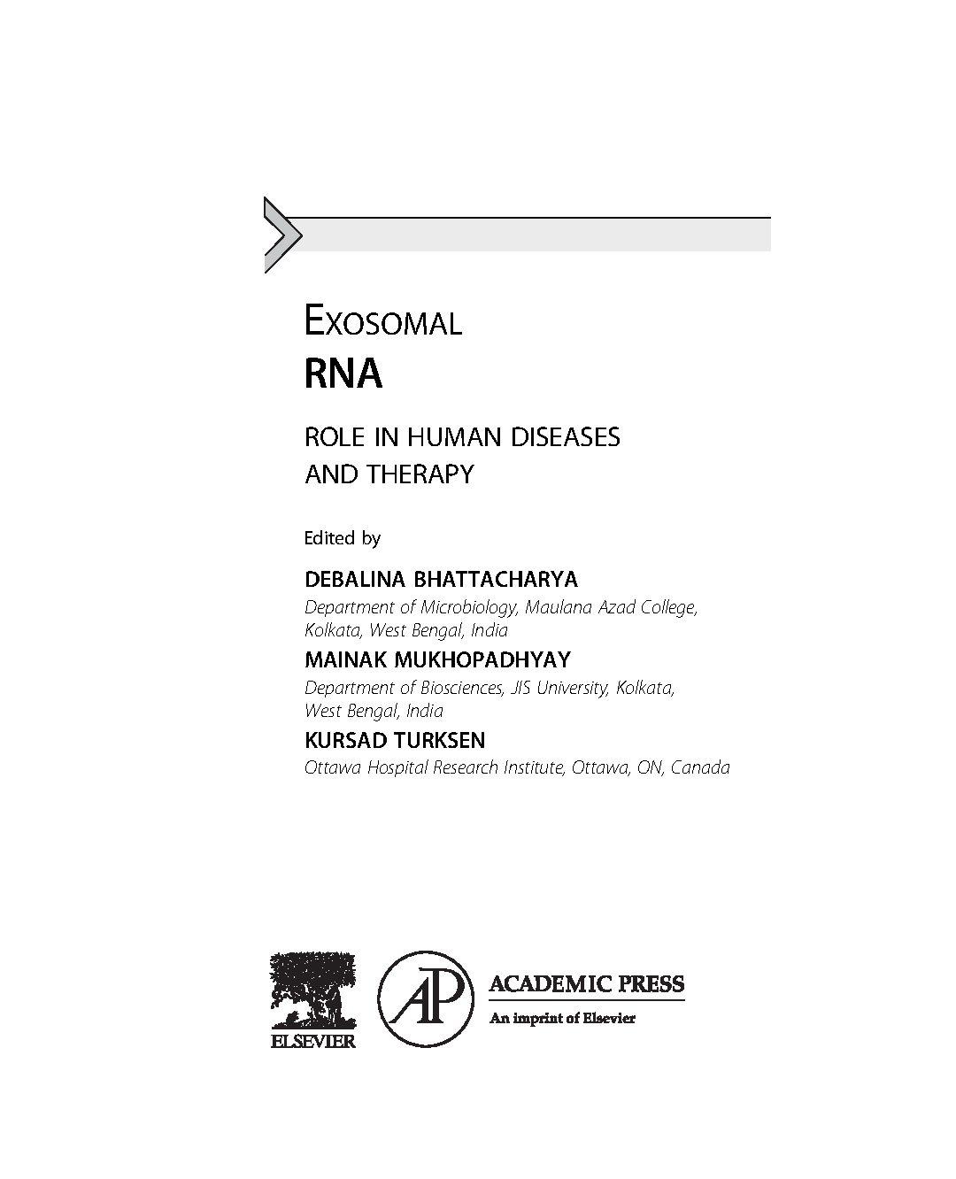 Exosomal RNA: Role in Human Diseases and Therapy - Edited by Debalina Bhattacharya, Mainak Mukhopadhyay, and Kursad Turksen