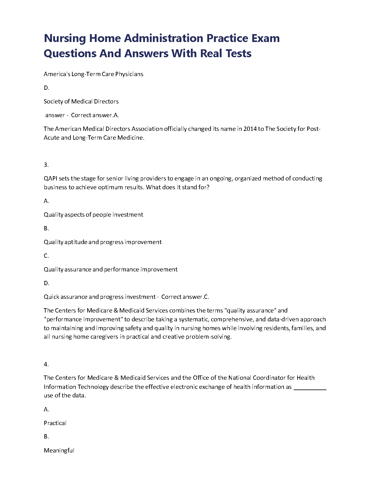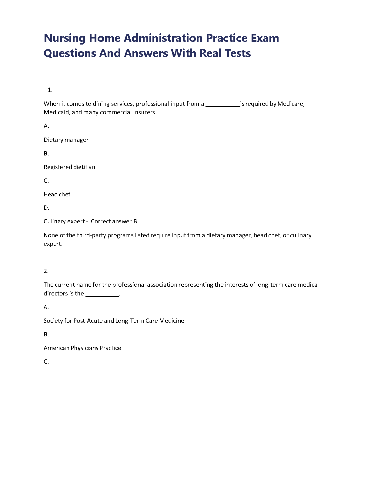 Nursing Home Administration Practice Exam Questions and Answers: 2024-2025 Edition - Ace Your Exams!