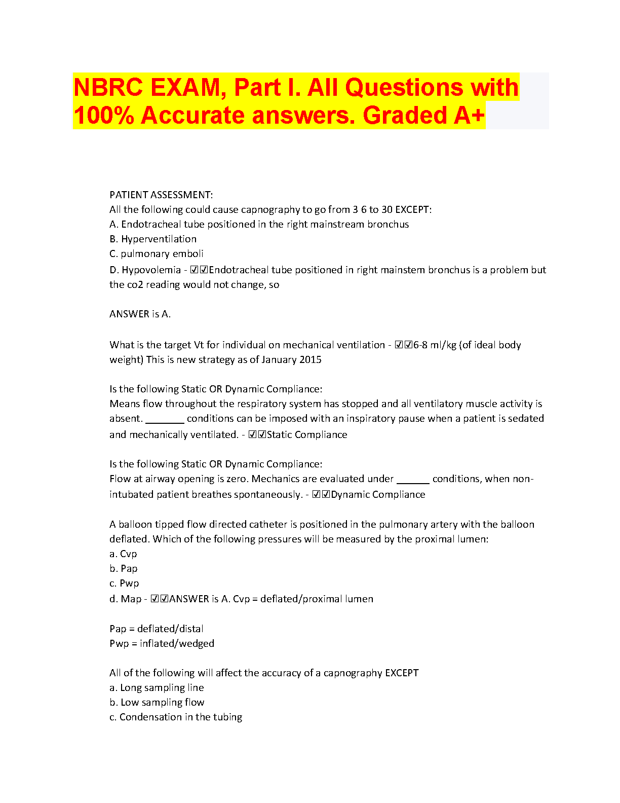 NBRC EXAM, Part I. All Questions with 100% Accurate answers. Graded A+. MOST RELIABLE FOR BEST SCORES. DOWNLOAD on www.fliwy.com INSTANTLY.