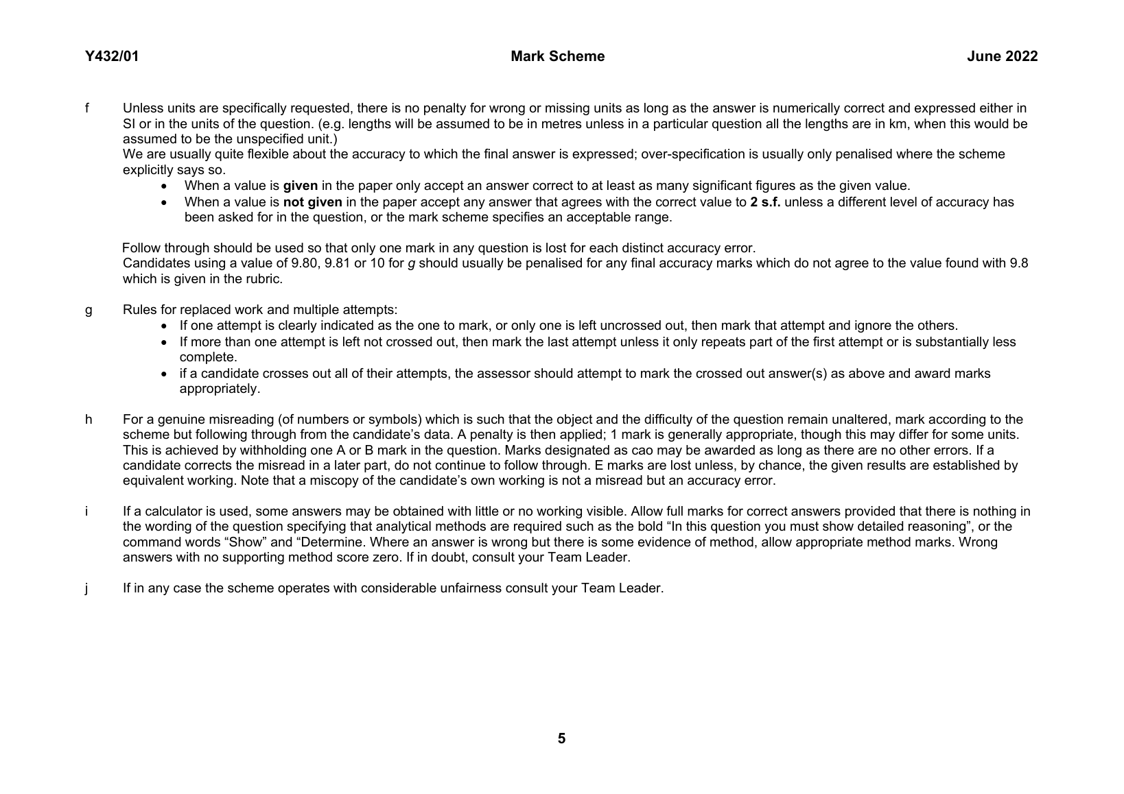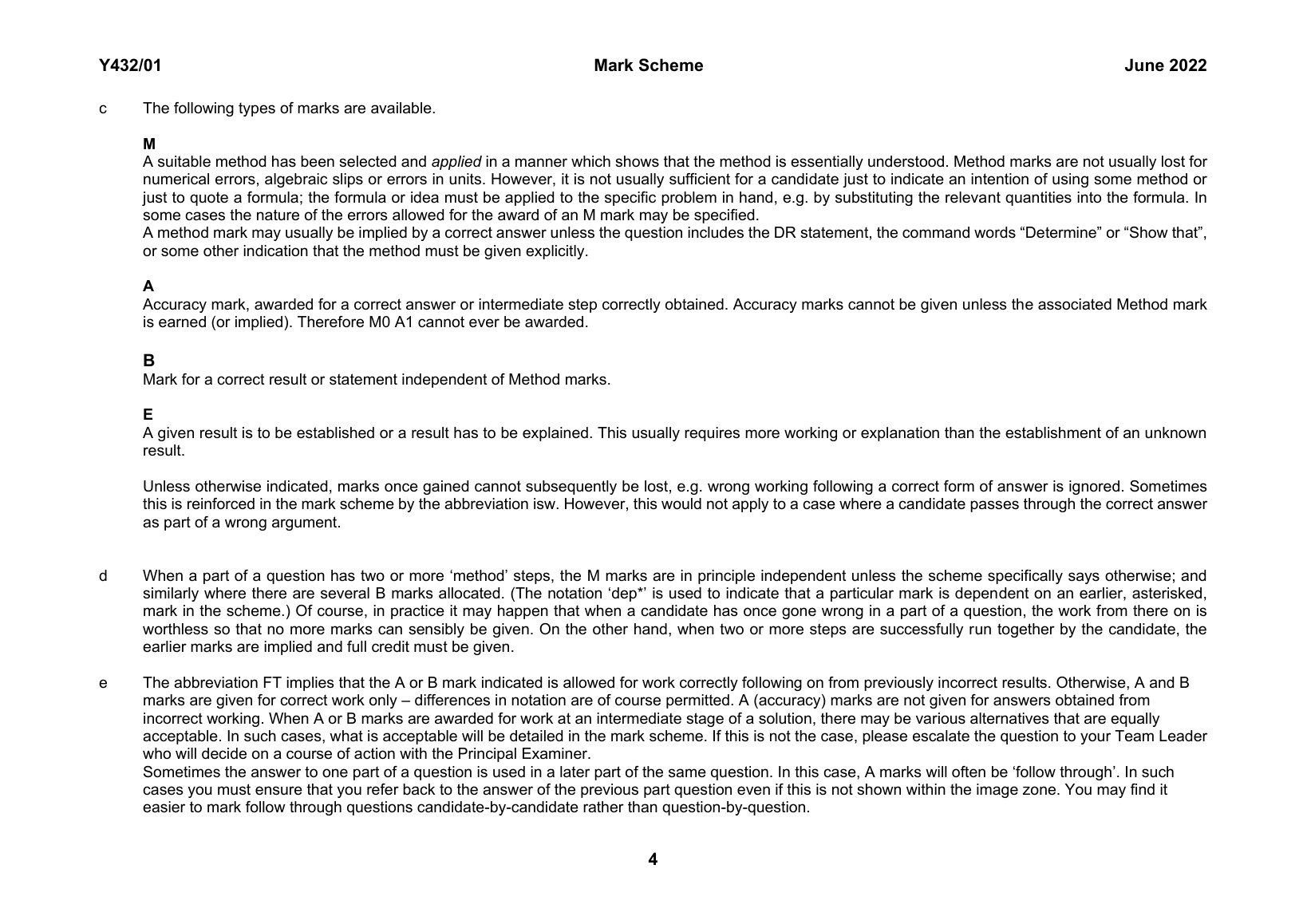 OCR A LEVEL FURTHER MATHEMATICS B (MEI) PAPER 1 JUNE 2022 MARK SCHEME (Y432/01: Statistics Minor)