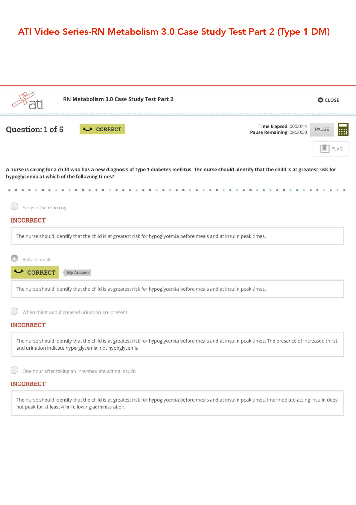 This comprehensive ATI RN Metabolism 3.0 Case Study Test Part 2 (Type 1 DM) resource for the 2024-2025 academic year is designed to help nursing students master the material and pass their exams on the first attempt. This resource provides in-depth explanations of key concepts, practice questions, and detailed answer rationales to reinforce your understanding and build confidence.