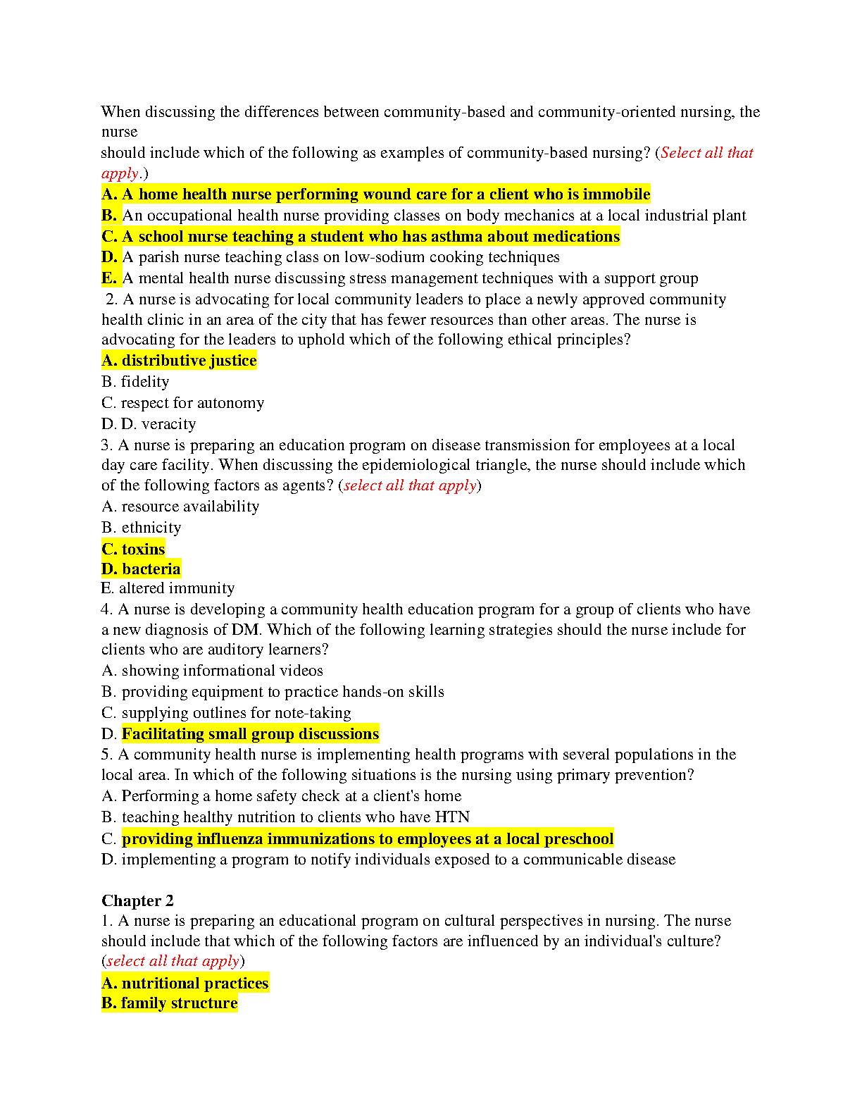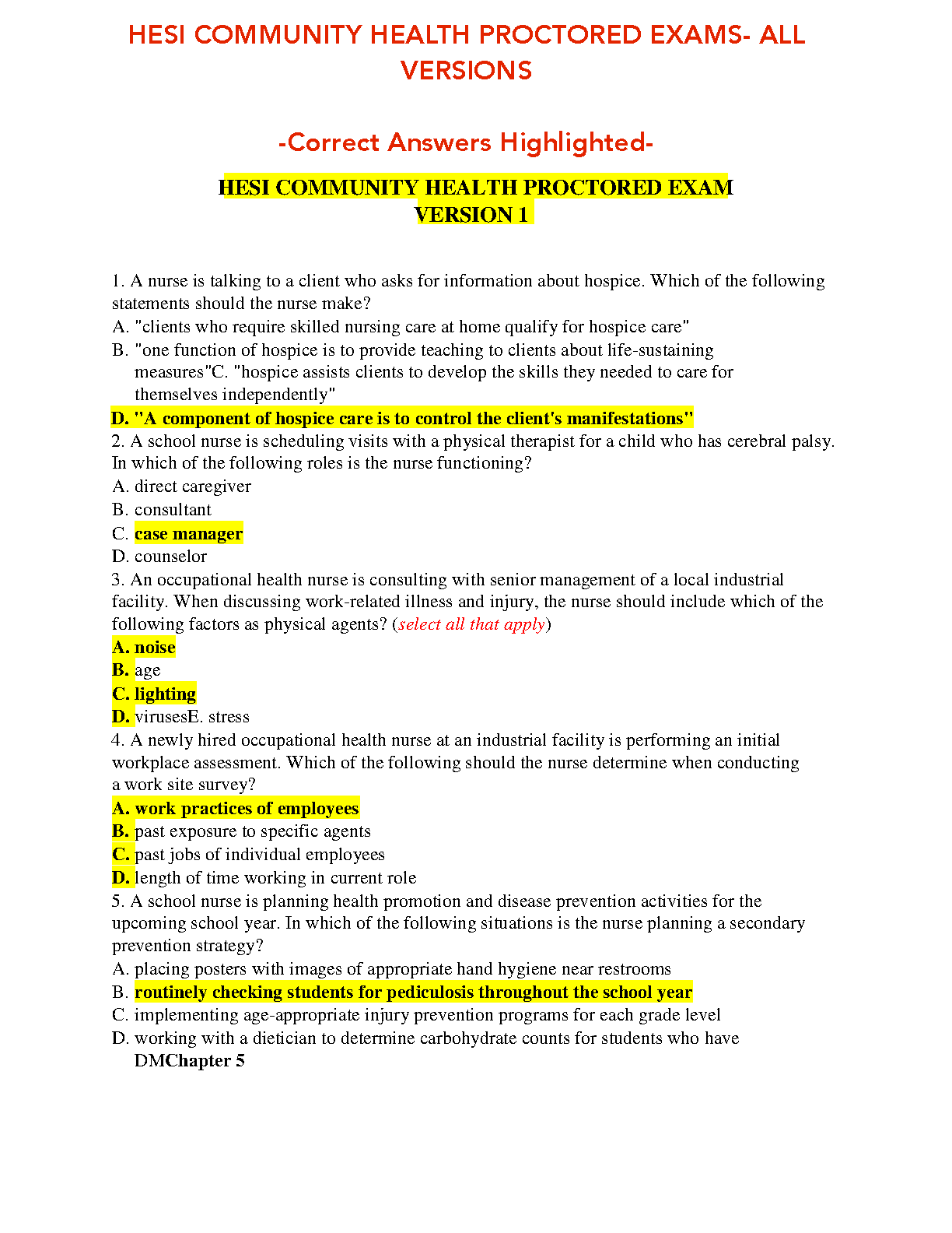 HESI Community Health Proctored Exam: All Versions with Answers Highlighted - 2024/2025 Edition