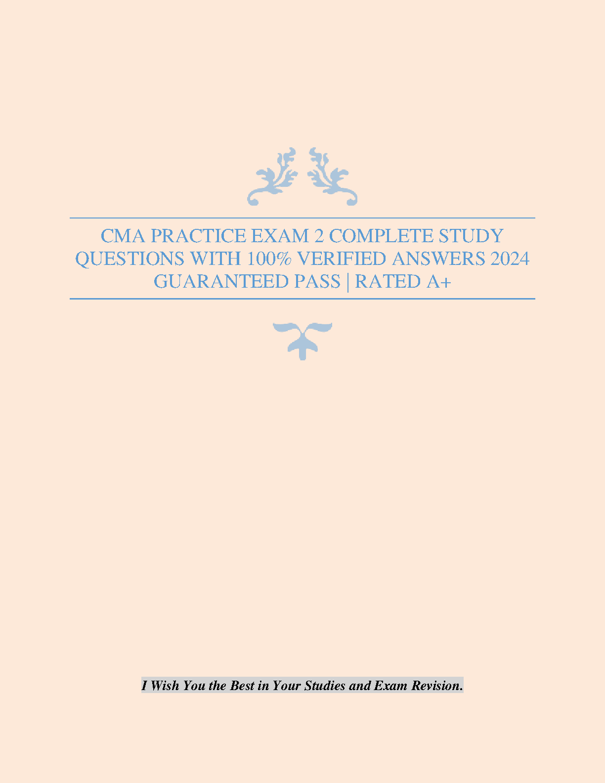 Ace your CMA Exam on the first attempt with this comprehensive study guide featuring 100% verified answers for Practice Exam 2. Designed for the 2024/2025 academic year, this resource guarantees a successful exam experience, eliminating the need for resits. Get the A+ you deserve!
