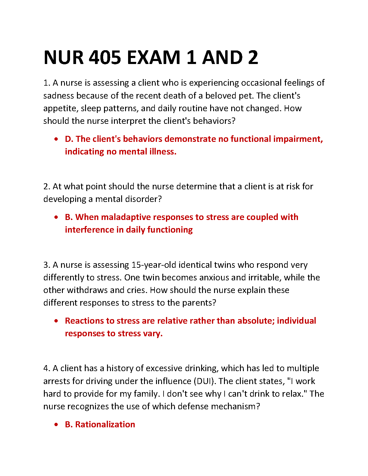Conquer your NUR 405 exams on the first try! This comprehensive study guide covers key concepts from Exam 1 and Exam 2, helping you master the material and avoid resits. Prepare effectively for the 2024/2025 academic year with this essential resource.
