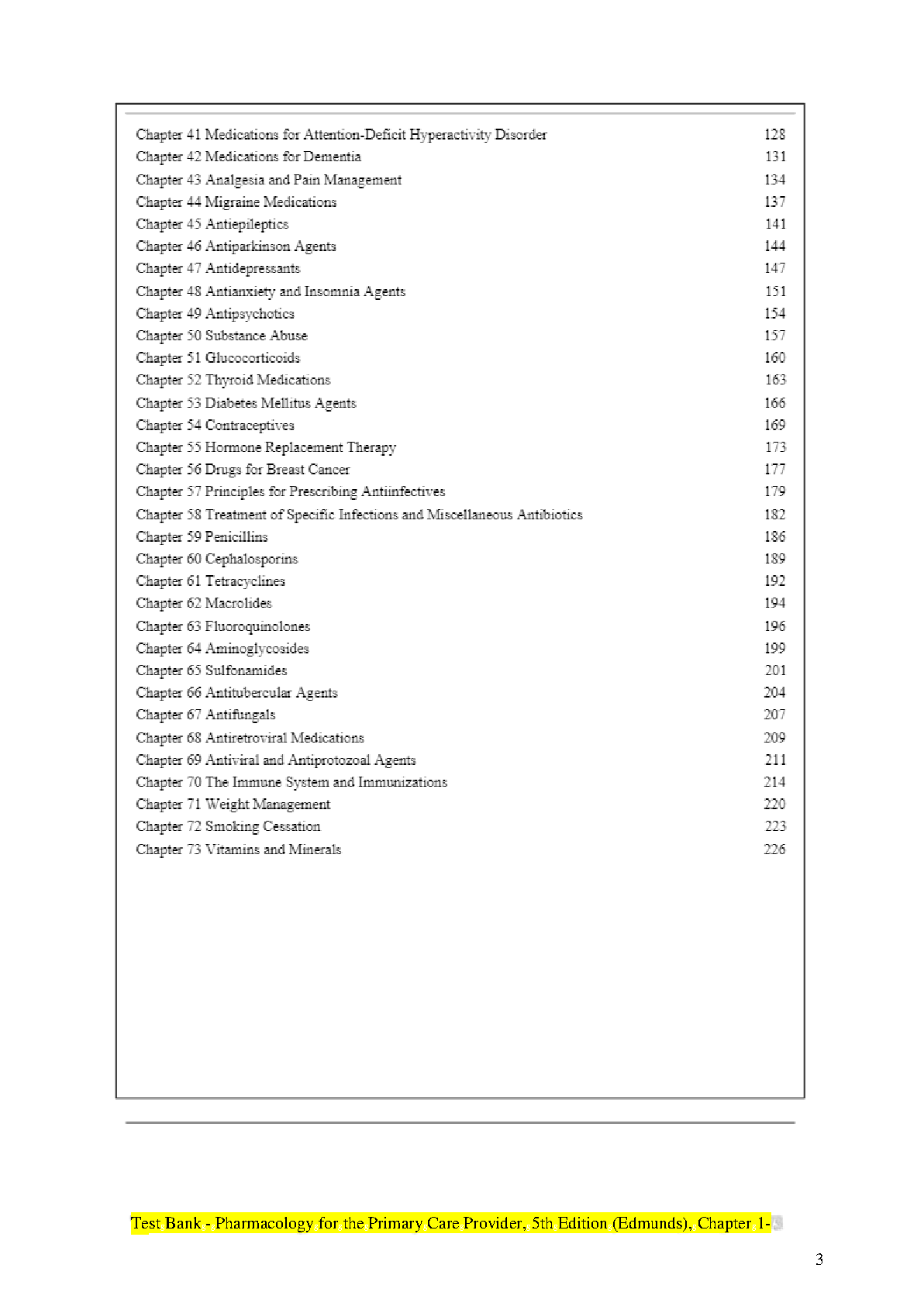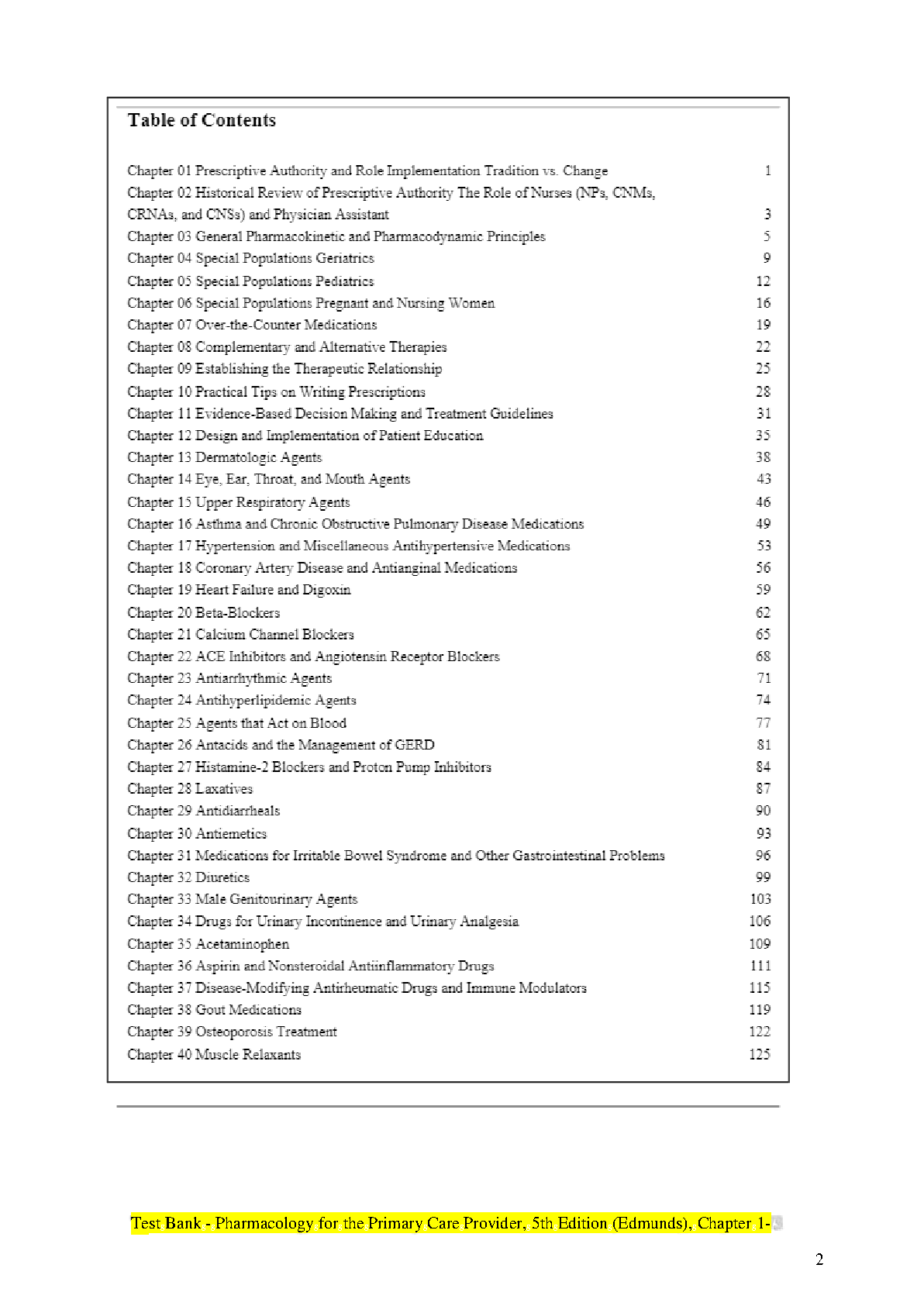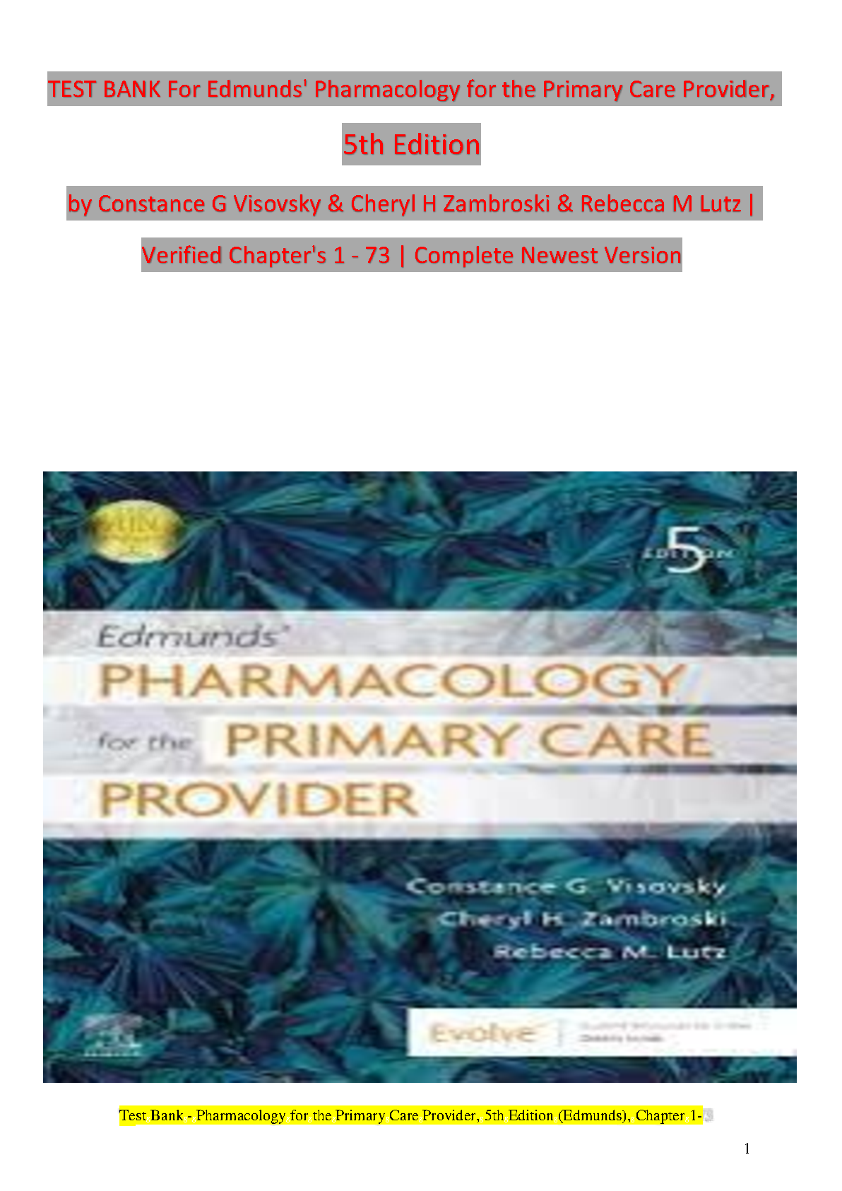 Ace your pharmacology exams with this comprehensive test bank for Edmunds' Pharmacology for the Primary Care Provider, 5th Edition. This resource covers all 73 chapters, offering a complete and up-to-date preparation for students seeking to pass on their first attempt. Verified solutions and detailed explanations help reinforce learning and address common exam questions.