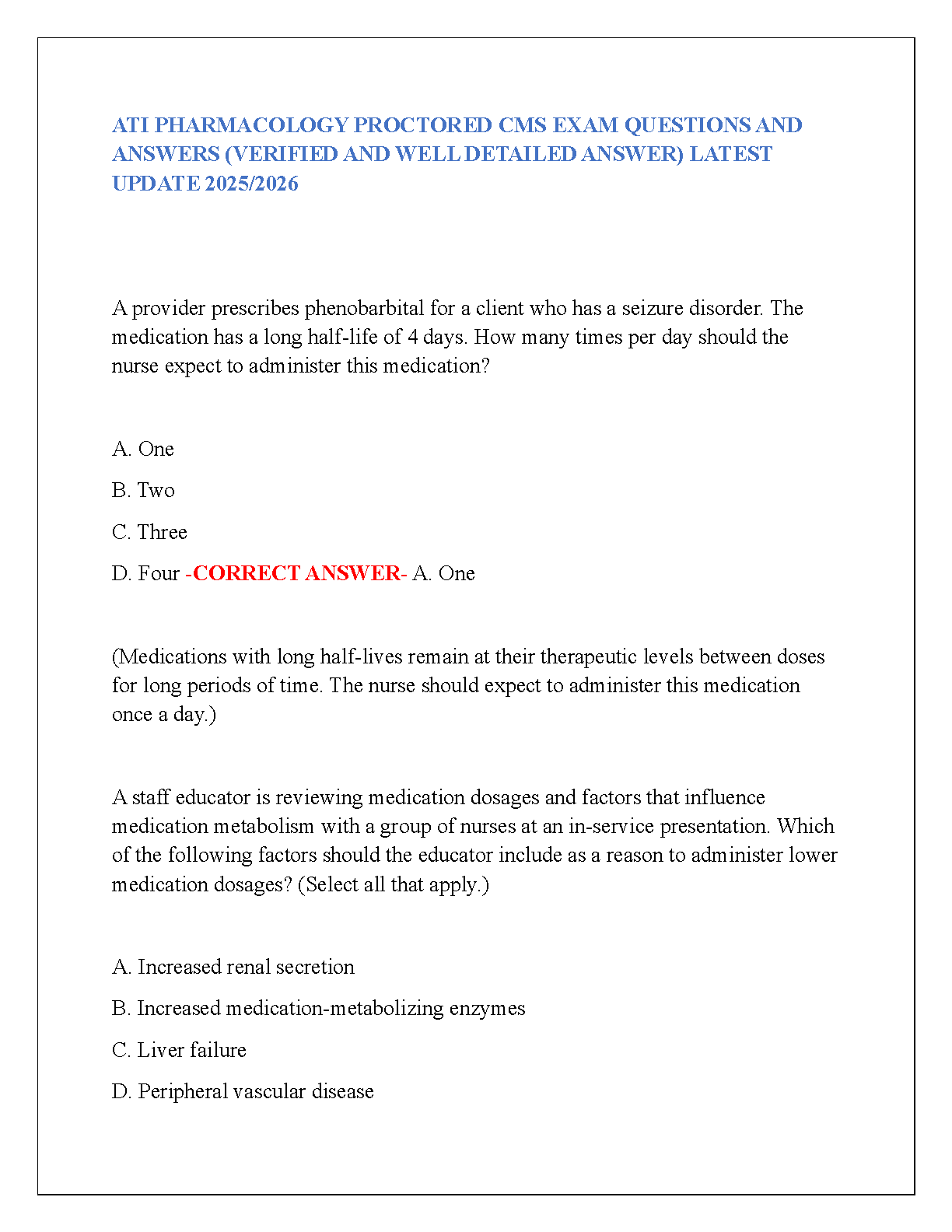 ATI Pharmacology Proctor Exam Questions and Answers (2025/2026 Edition) - Verified & Detailed Solutions