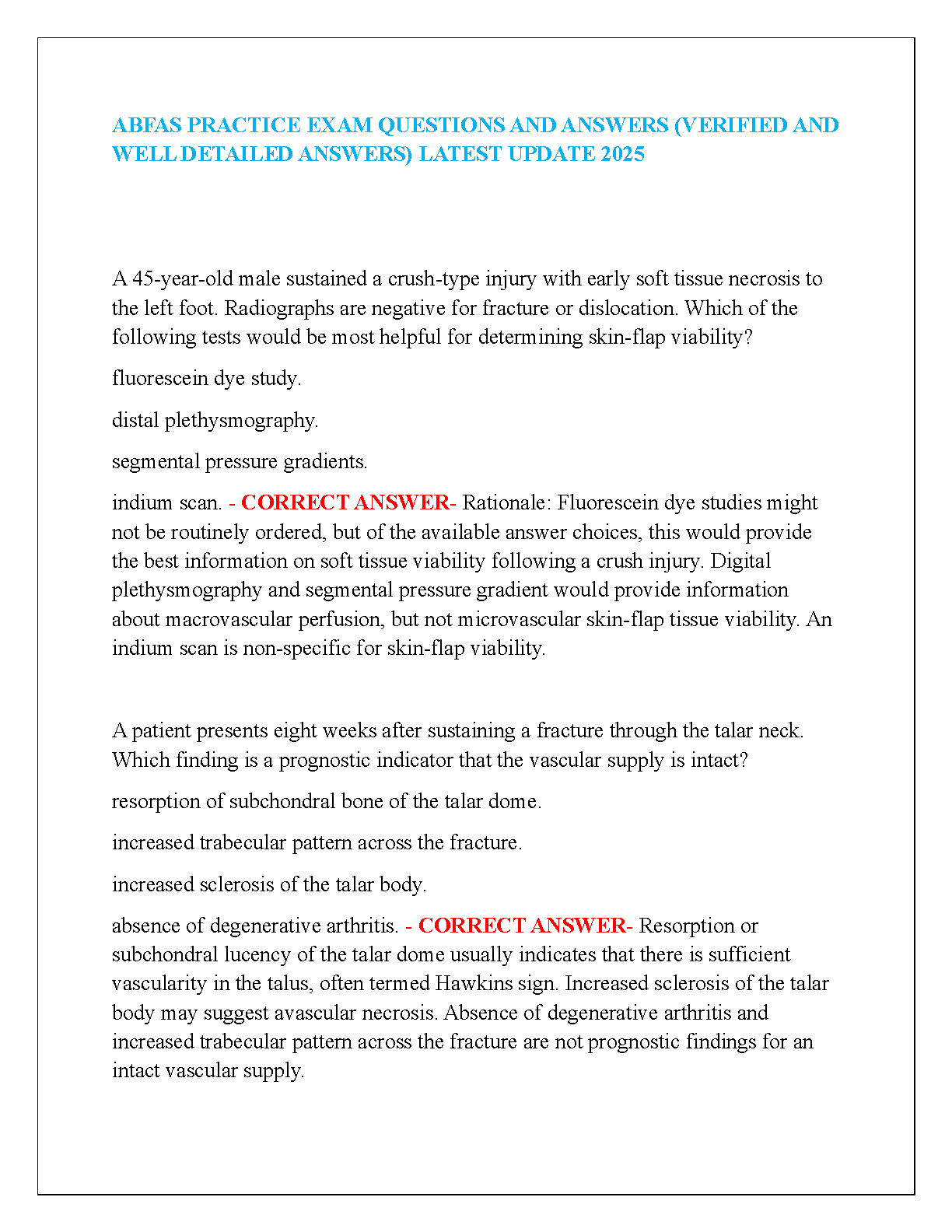 ABFAS Practice Exam Questions and Answers (Verified and Well-Detailed Answers) - 2025 Edition