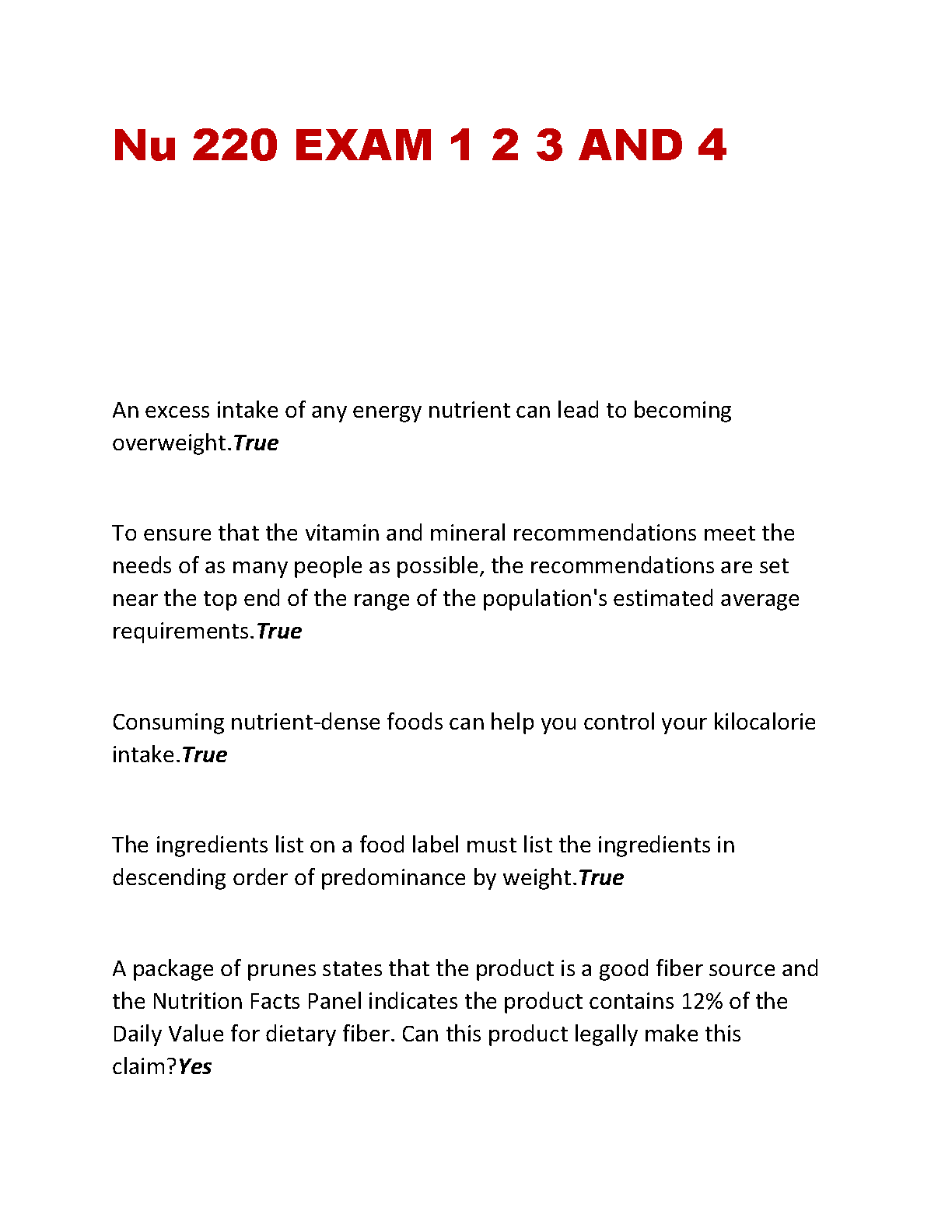 Nu 220 Exam 1, 2, 3, and 4: Ace Your Nutrition Exams with This Study Guide