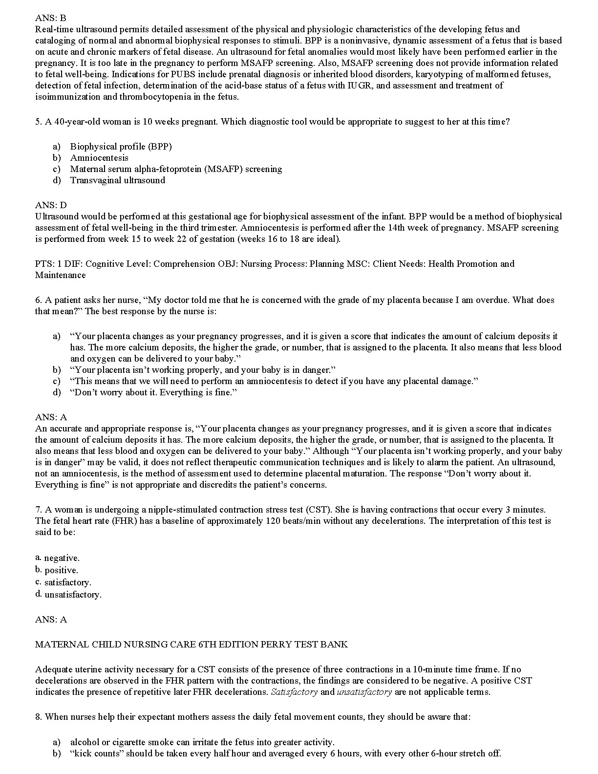 Maternal Child Nursing Care 6th Edition Test Bank by Perry, Hockenberry, Lowdermilk, and Wilson