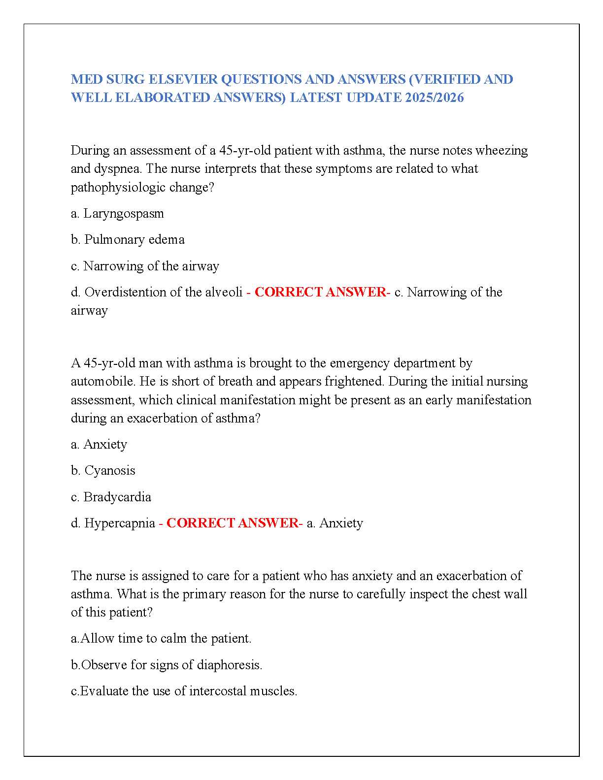 Med-Surg Elsevier Questions and Answers (Verified and Well-Elaborated Answers) 2024-2025 Edition: Ace Your Exams on the First Attempt
