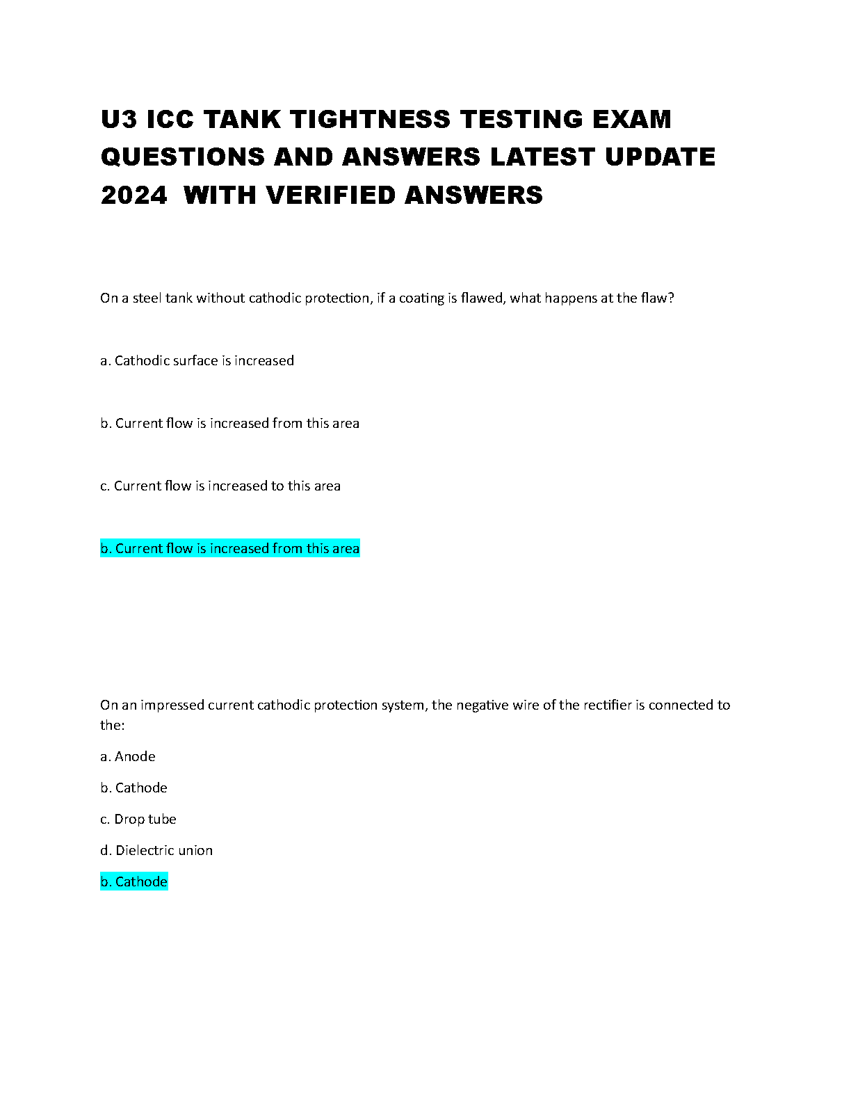 2024 U3 ICC Tank Tightness Testing Exam Questions and Answers: Verified Solutions for First-Time Exam Success