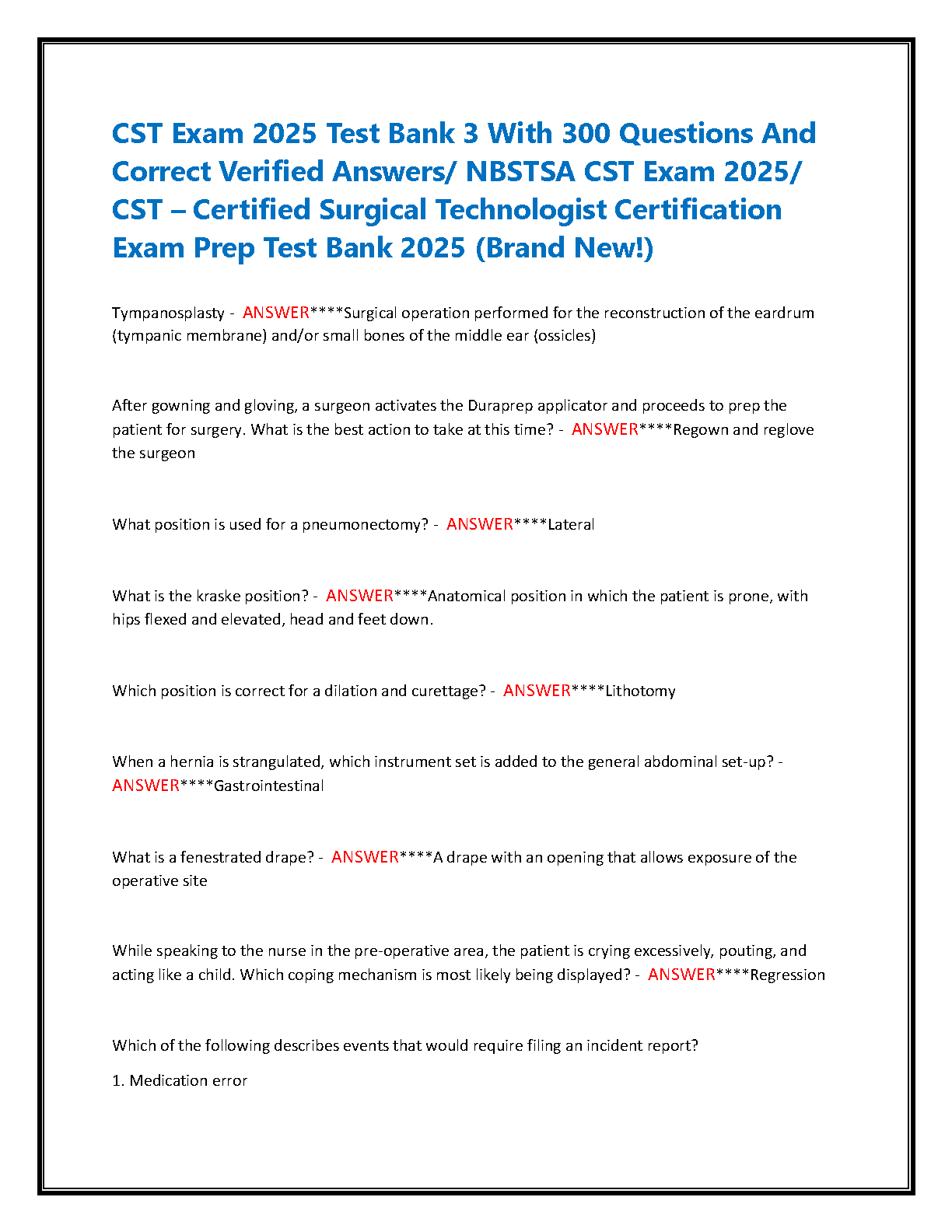 CST Exam 2025 Test Bank 3: 300 Questions & Verified Answers by [Author Names]