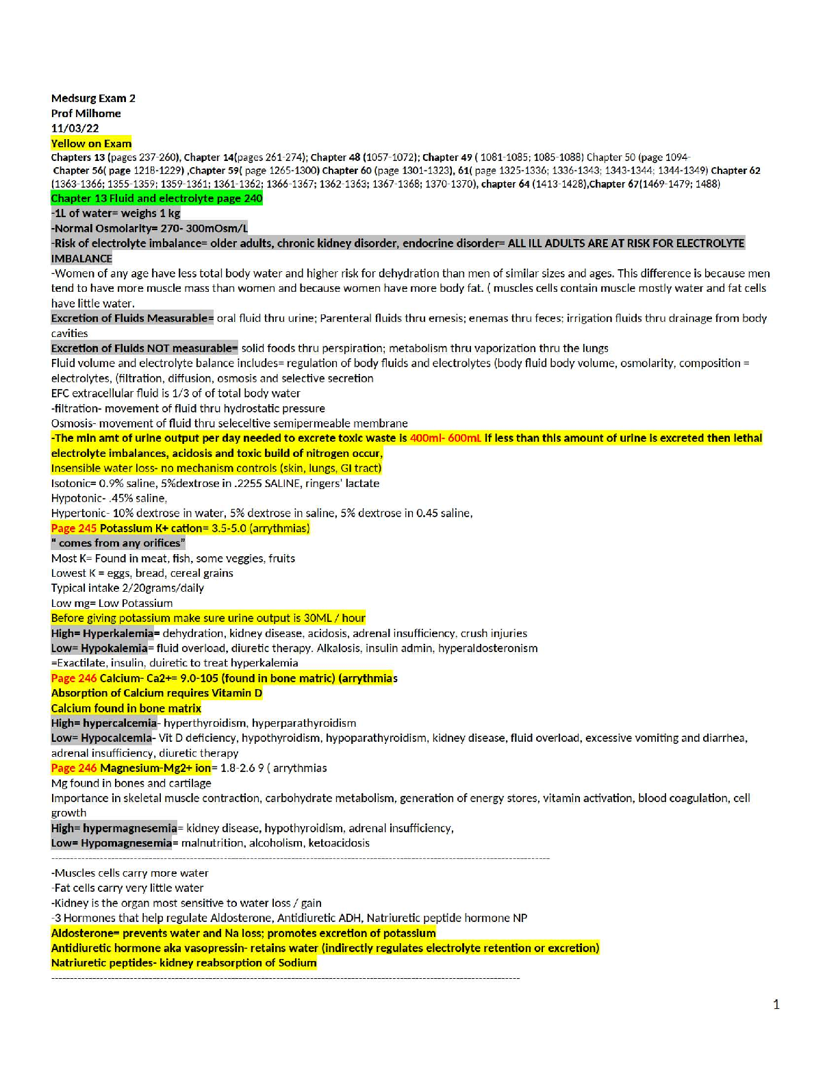 Medsurg Exam 2 Review Guide for 2024/2025: Mastering Electrolytes and Fluid Balance - Prof. Milhome's Edition