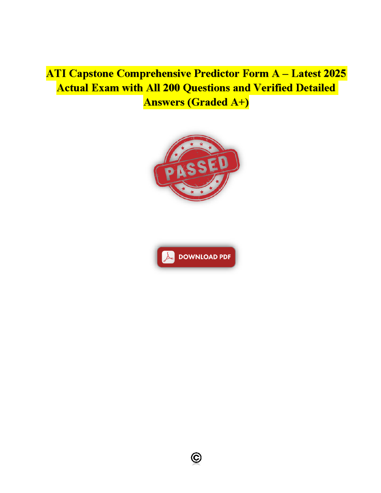 ATI Capstone Comprehensive Predictor Form A - Latest 2025 Edition: 200 Questions & Verified Answers (A+)