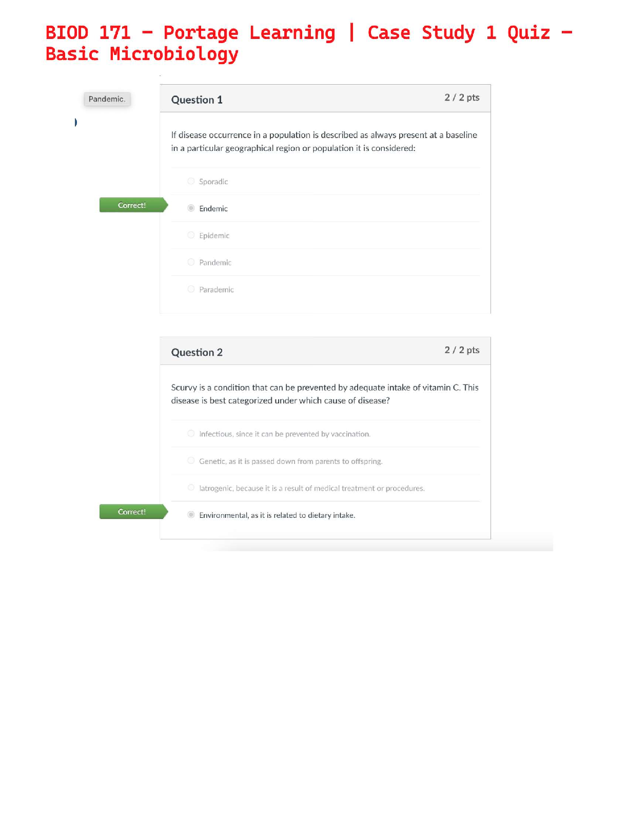 BIOD 171 Basic Microbiology Case Study 1 Quiz: Portage Learning 2024/2025 Edition