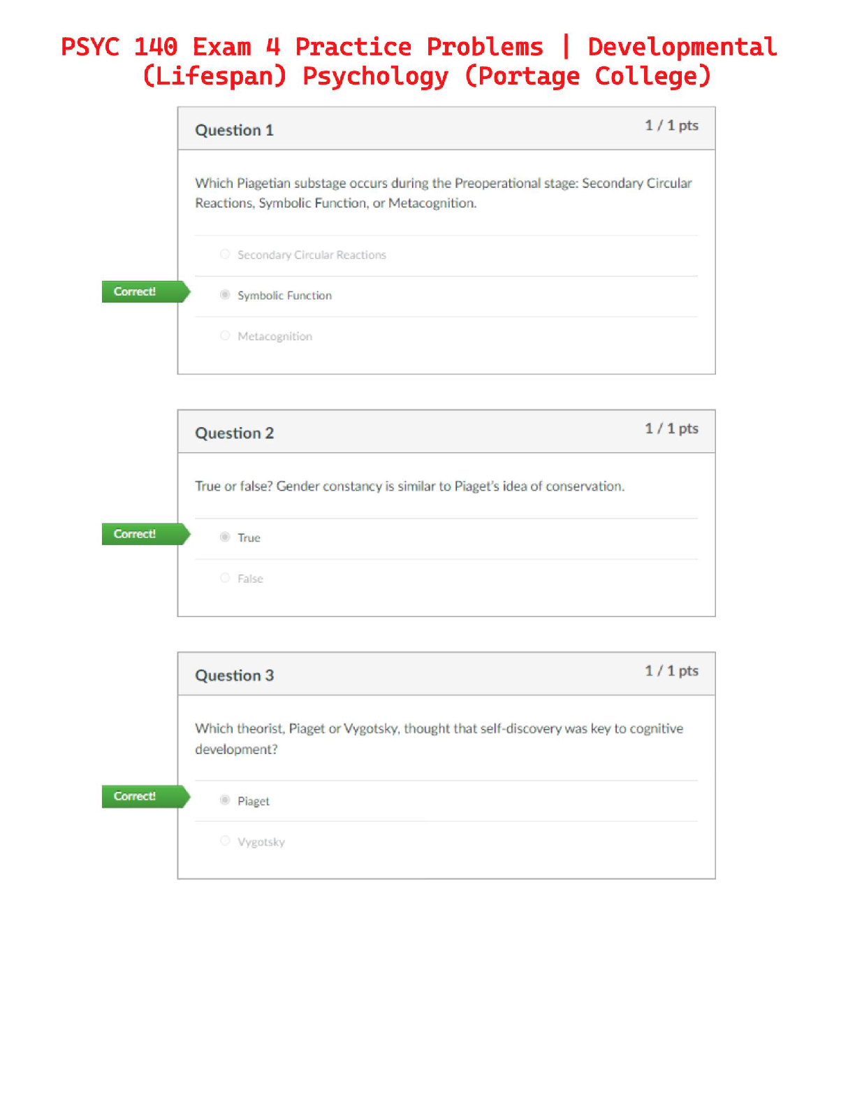 PSYC 140 Exam 4 Practice Problems: Developmental (Lifespan) Psychology - Portage College