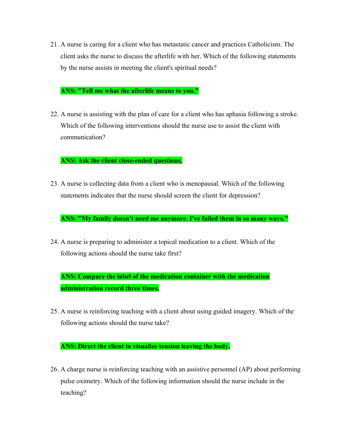 ATI PN Fundamentals Exam Form A | Questions and Answers | Latest 2020 / 2021 RECENTLY UPDATED