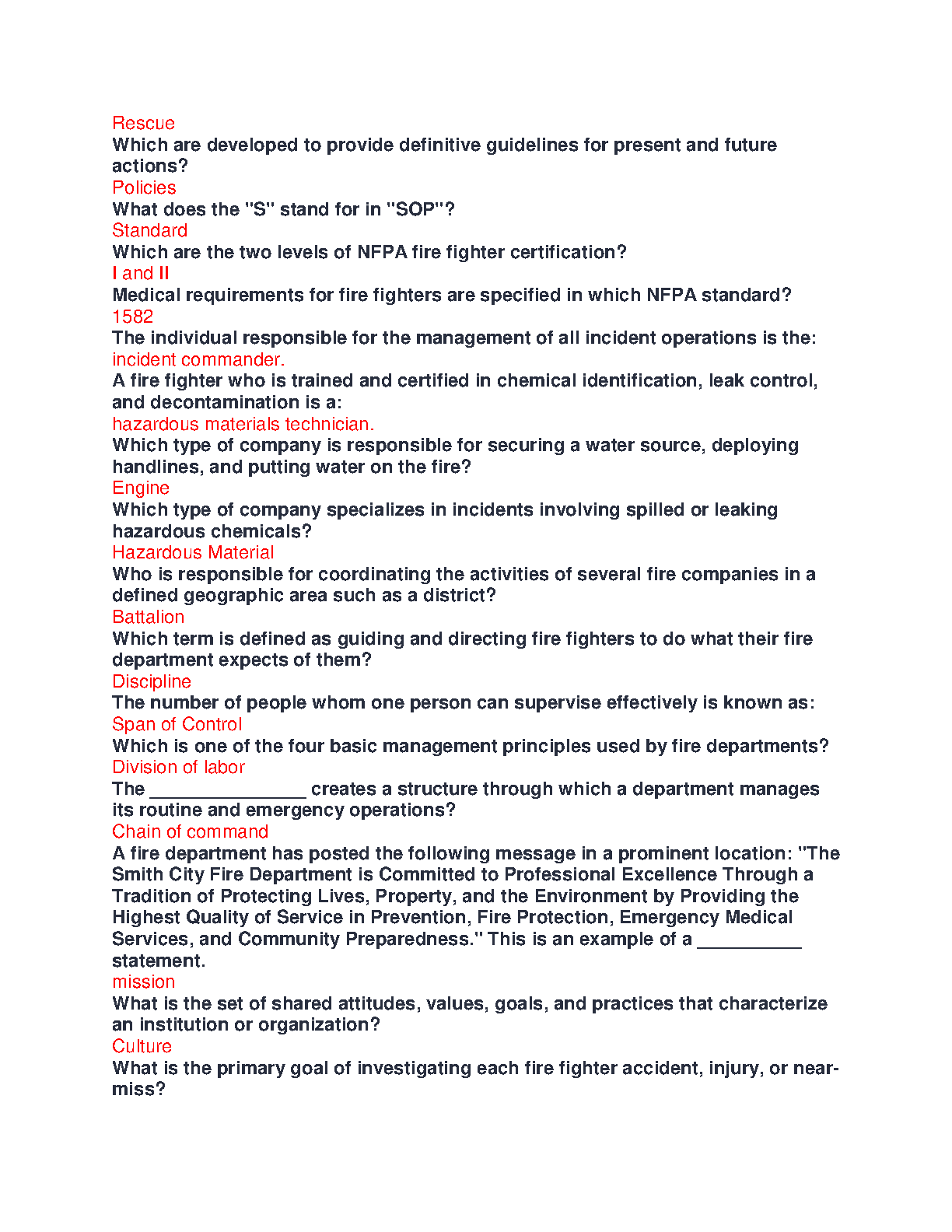 Firefighter 1 Final Exam Test Study Guide 2025 Edition: Ace Your Exam with Comprehensive Questions and Answers