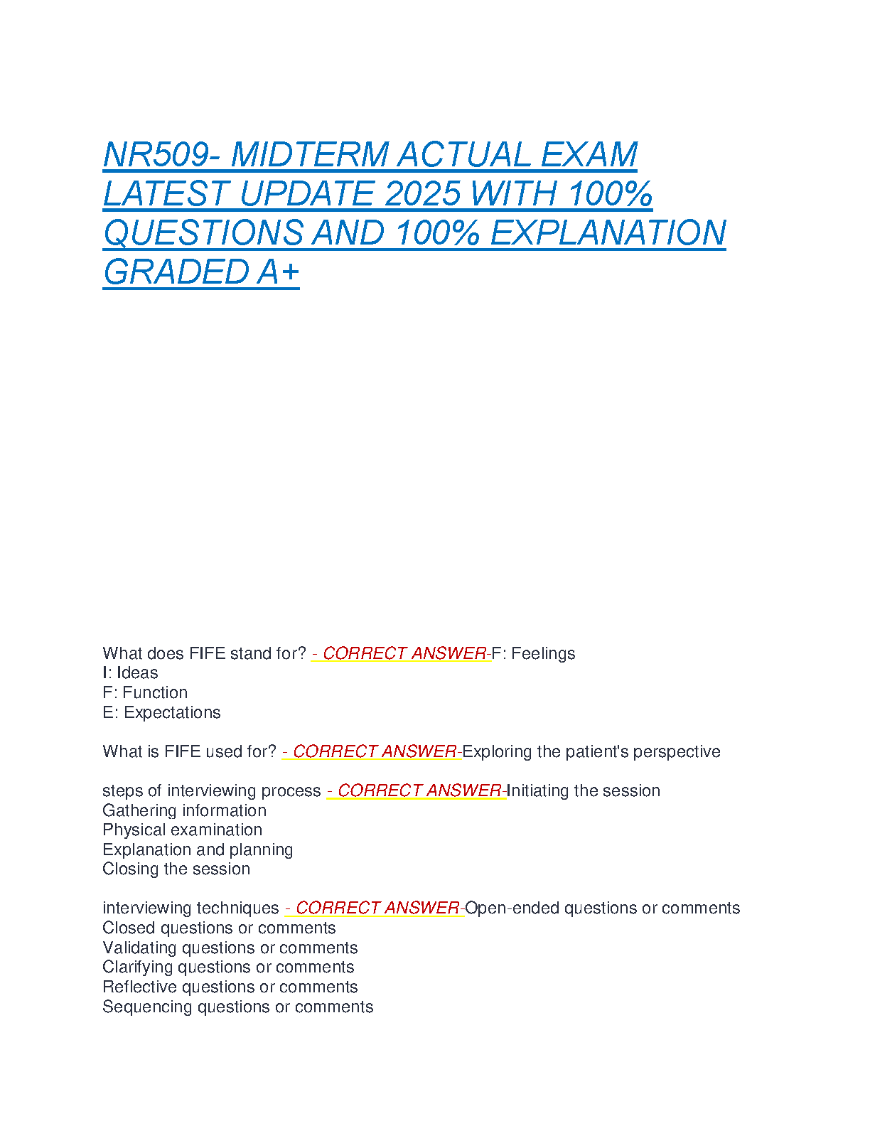 Ace your NR509 Midterm Exam with this comprehensive study guide! This 2025 updated resource includes 100% of the questions and answers, along with detailed explanations to ensure you understand the concepts. Guaranteed to help you pass on your first attempt and avoid resits.