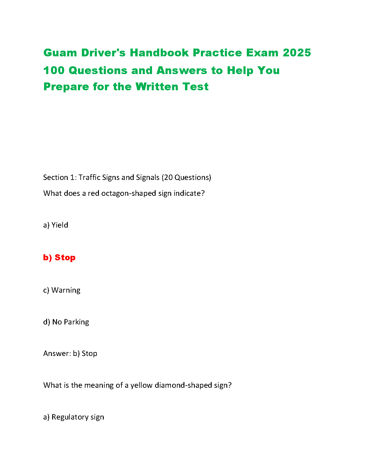 2025 Guam Driver's Handbook Practice Exam: 100 Questions & Answers for First-Time Pass