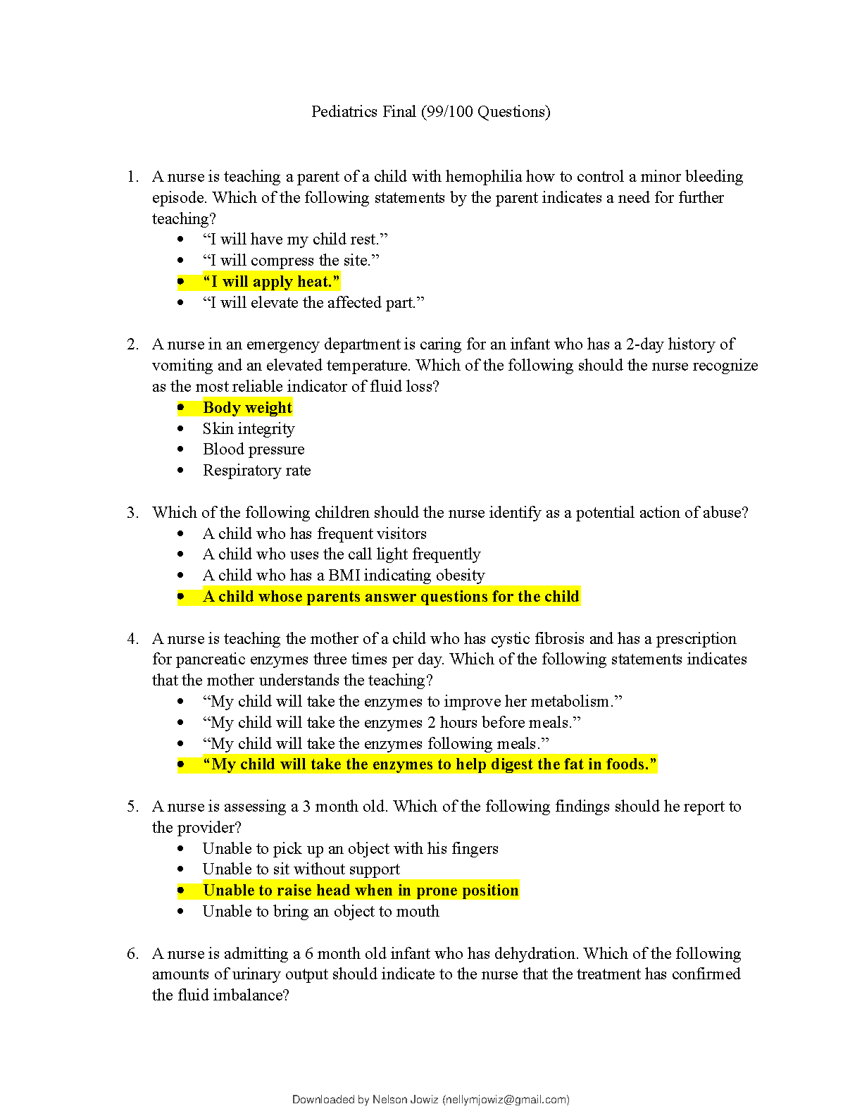 Chamberlain University Pediatric Nursing Final Exam Answers (2020 Edition)