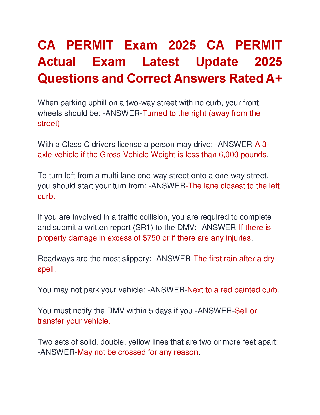 2025 CA Permit Exam: Actual Questions & Answers - Latest Update Rated A+