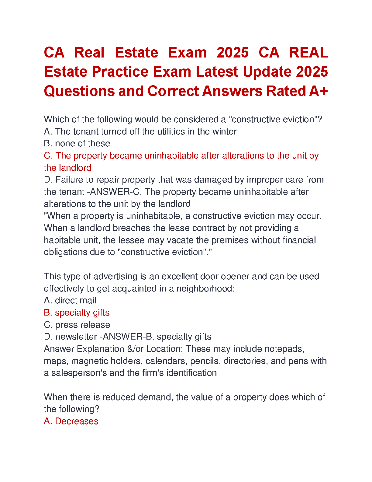 2025 CA Real Estate Exam Practice Questions and Answers by [Author's Name]