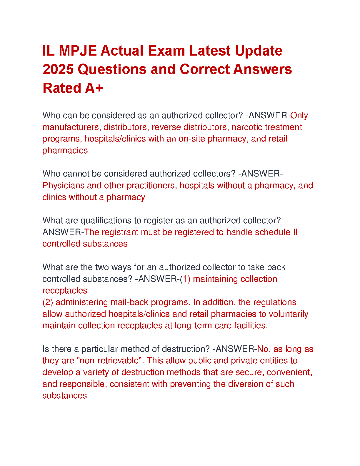 Ace your 2025 Illinois MPJE exam on the first try with this comprehensive guide. This resource contains the latest updated questions and answers, ensuring you're fully prepared for the exam. Rated A+ for accuracy and effectiveness. Avoid resits and conquer your exam!