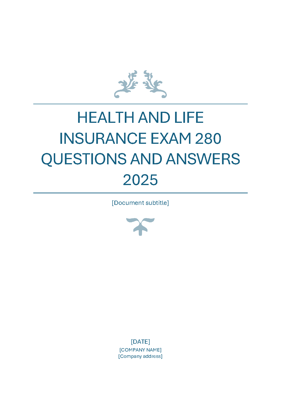 2025 Health and Life Insurance Exam 280 Questions and Answers: Ace Your Exam on the First Attempt