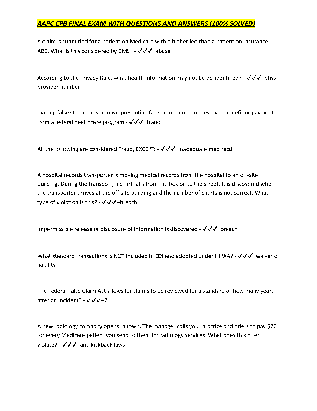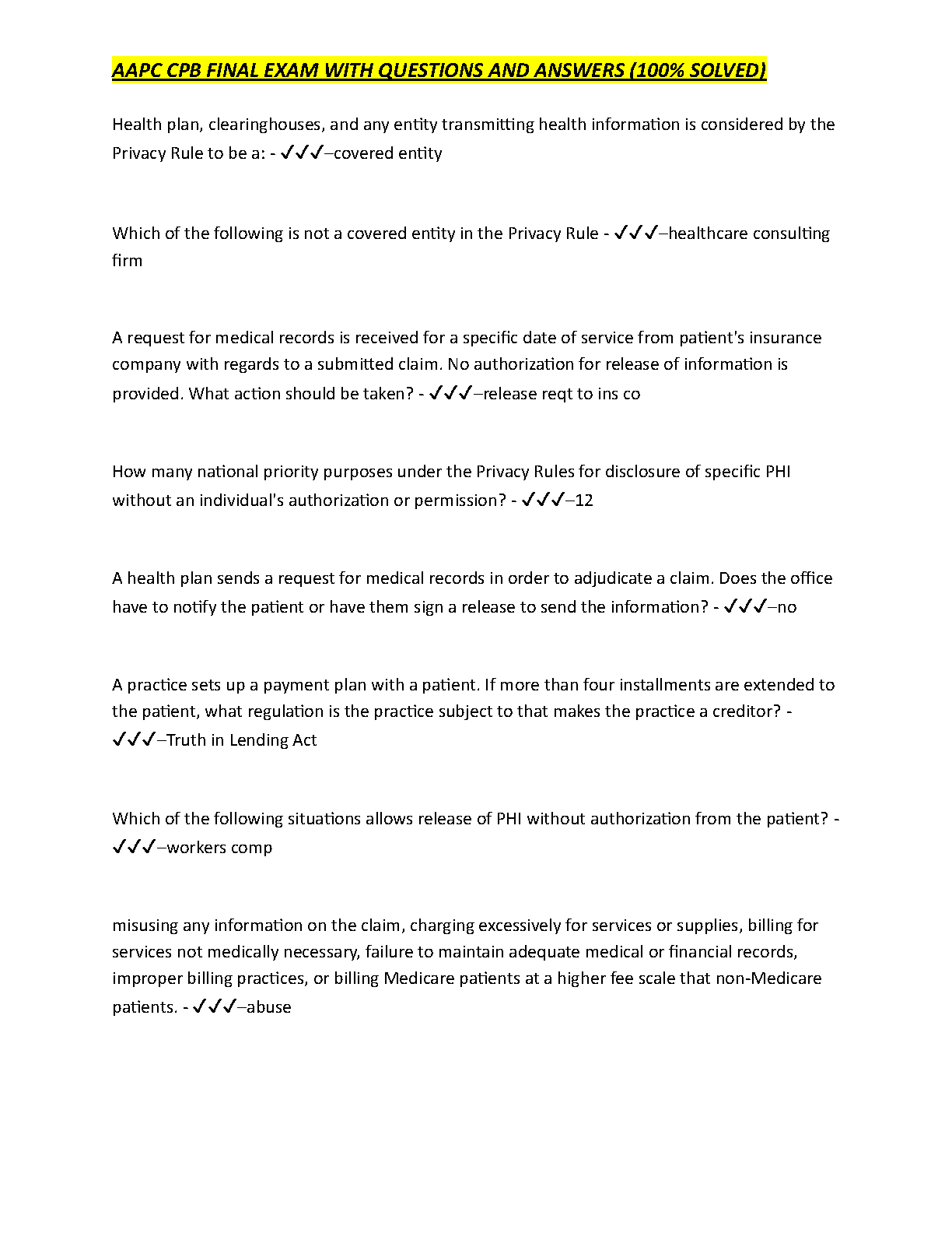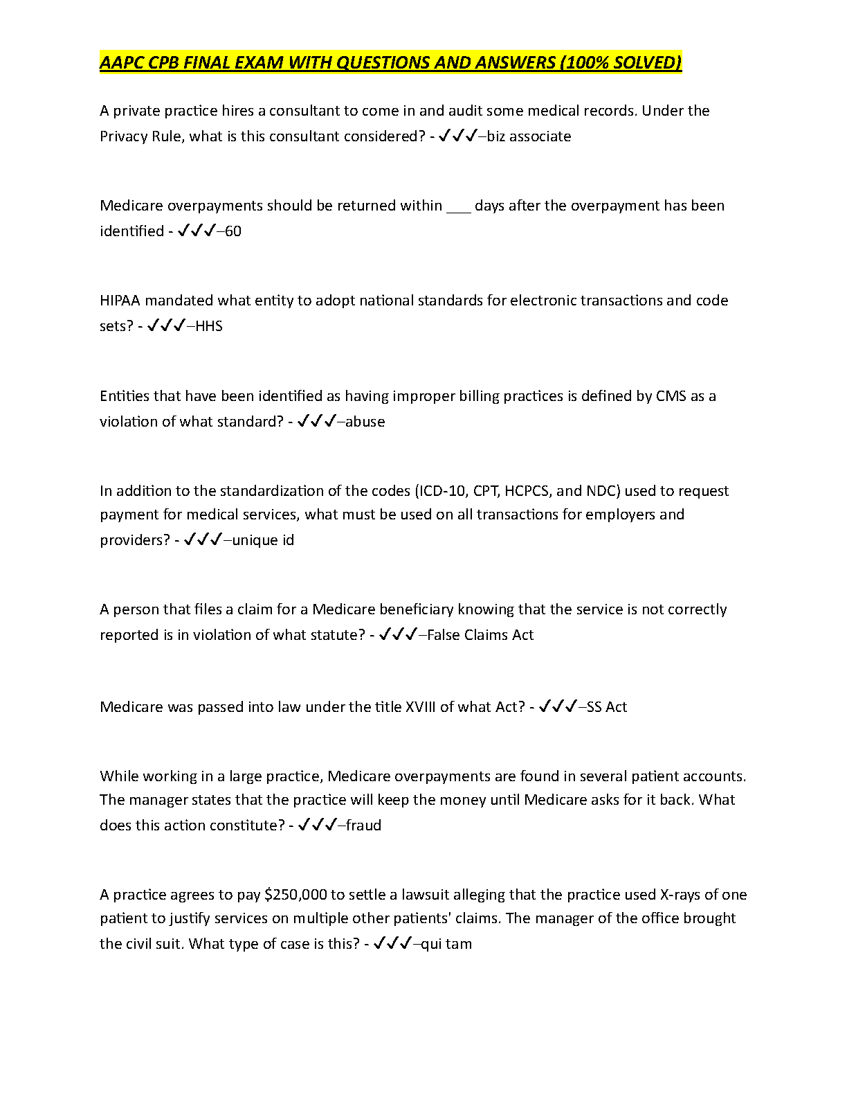 AAPC CPB Final Exam Questions and Answers (100% Solved)