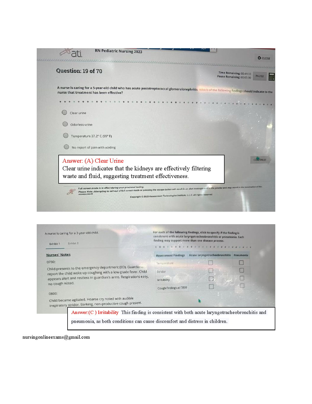 2023/2024 RN ATI Pediatric Nursing Proctored Exam: NGN 70 Questions & Answers by Nursing Online Exams