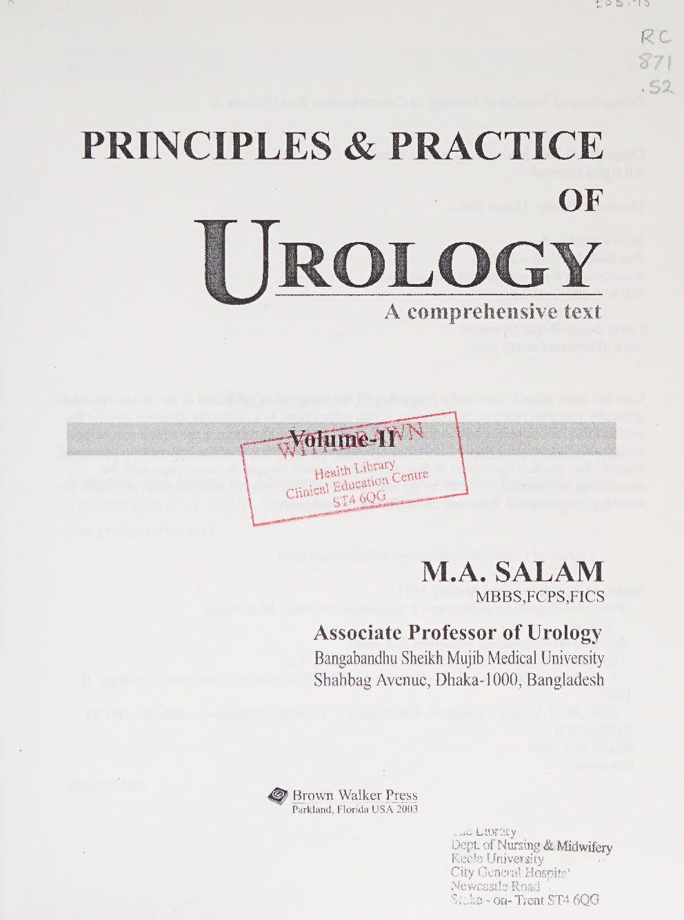 Principles and Practice of Urology: Volume 2 by M.A. Salam - A Comprehensive Text for Urology Students