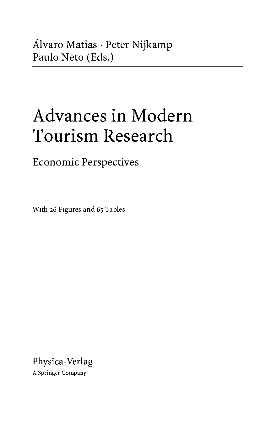 Advances in Modern Tourism Research: Economic Perspectives - Edited by Álvaro Matias, Peter Nijkamp, and Paulo Neto
