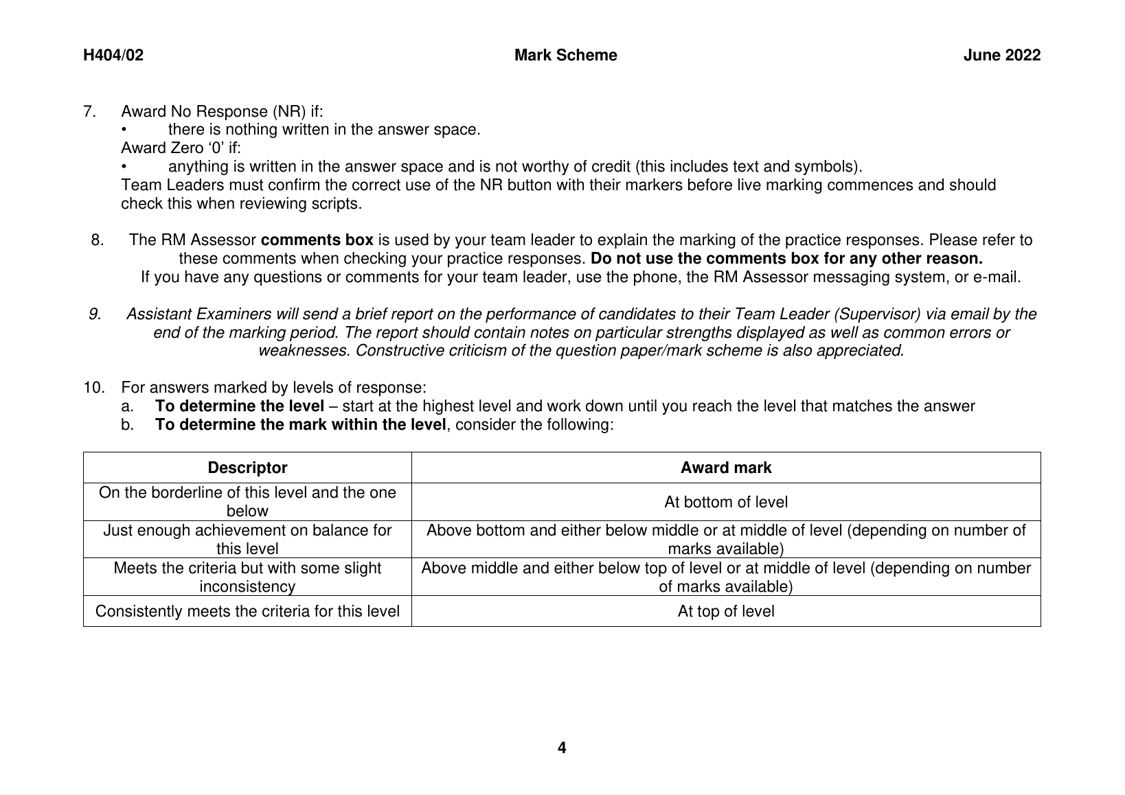 OCR A LEVEL DESIGN AND TECHNOLOGY: Design Engineering PAPER 2 JUNE 2022 MARK SCHEME (H404/02: Problem Solving in Design Engineering)