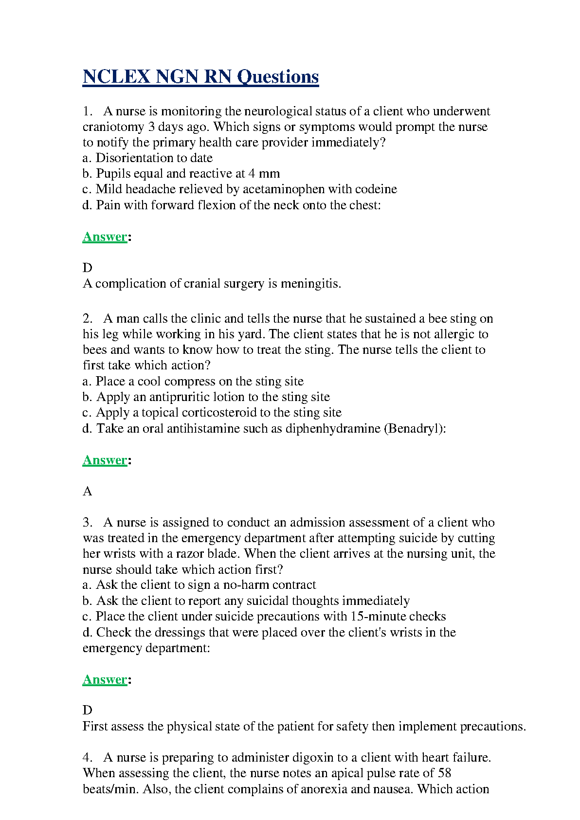 Prepare for your NCLEX-NGN RN exam with these practice questions designed to help you pass on your first attempt. These questions cover key concepts and scenarios to boost your confidence and knowledge. Avoid resits with targeted practice.