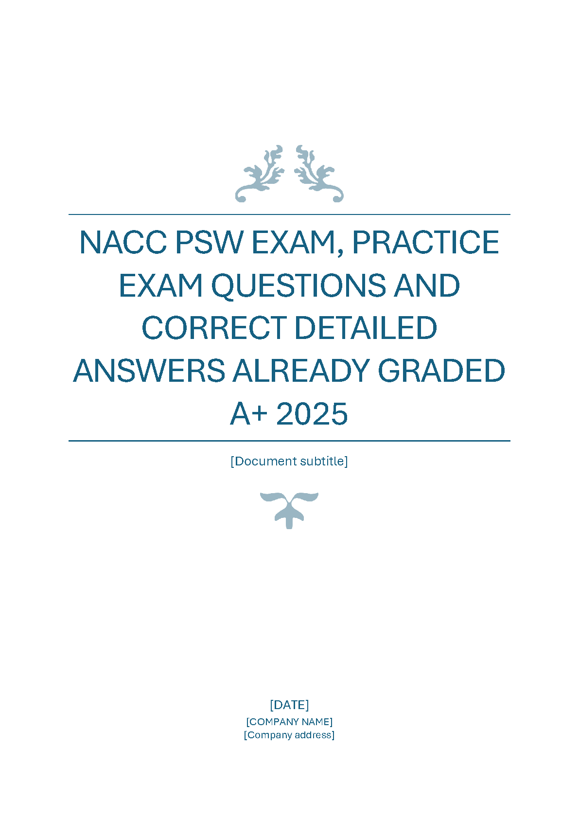 Ace your NACC PSW exam with this comprehensive set of practice questions and detailed, graded answers. Prepare for success and avoid resits with this up-to-date 2025 edition, designed to help you pass on your first attempt.
