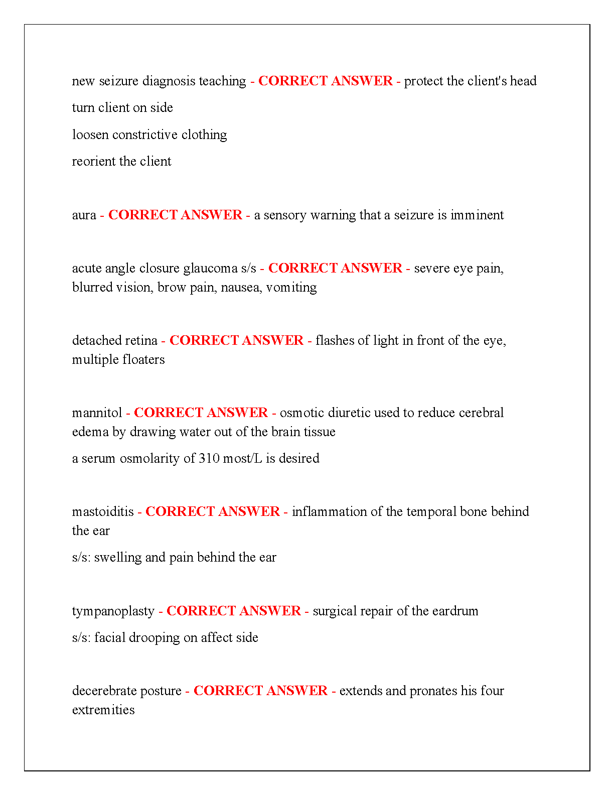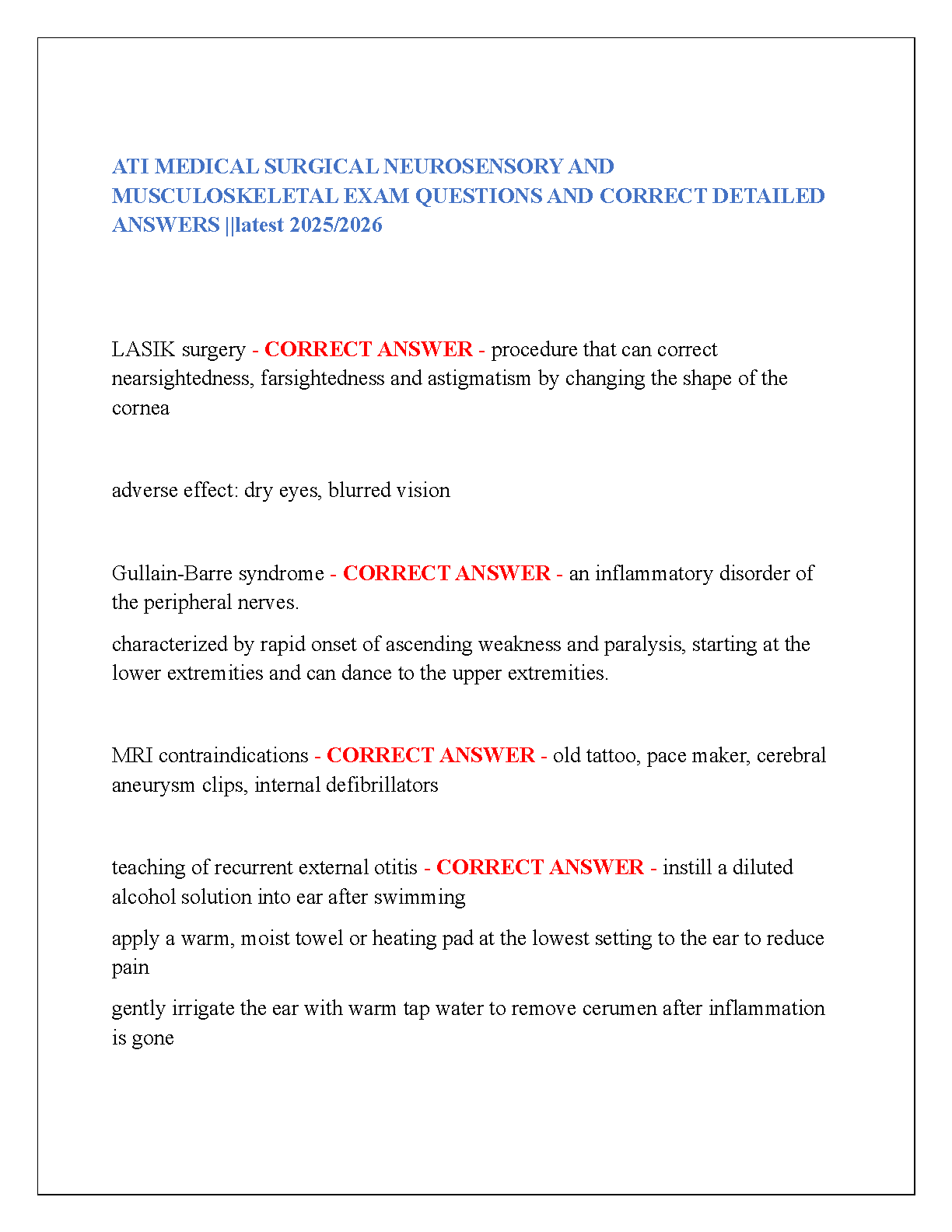 ATI Medical Surgical, Neurosensory, and Musculoskeletal Exam Questions and Answers: 2025/2026 Edition