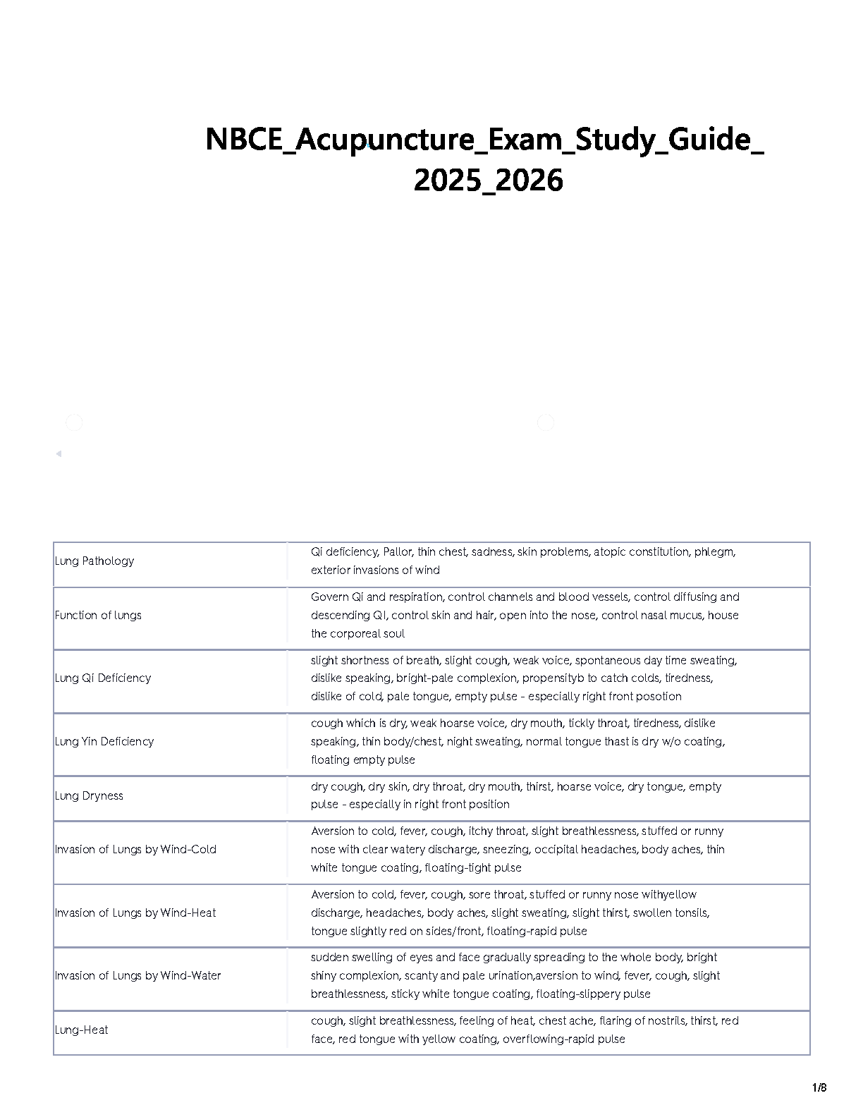 Ace your NBCE Acupuncture Exam with this expertly crafted 2025-2026 study guide. This resource covers key concepts in Lung Pathology, including Qi deficiency, Lung Qi Deficiency, Lung Yin Deficiency, Lung Dryness, and various invasions affecting the lungs. Detailed explanations and illustrative examples make complex topics easy to understand, helping you avoid resits and achieve exam success.