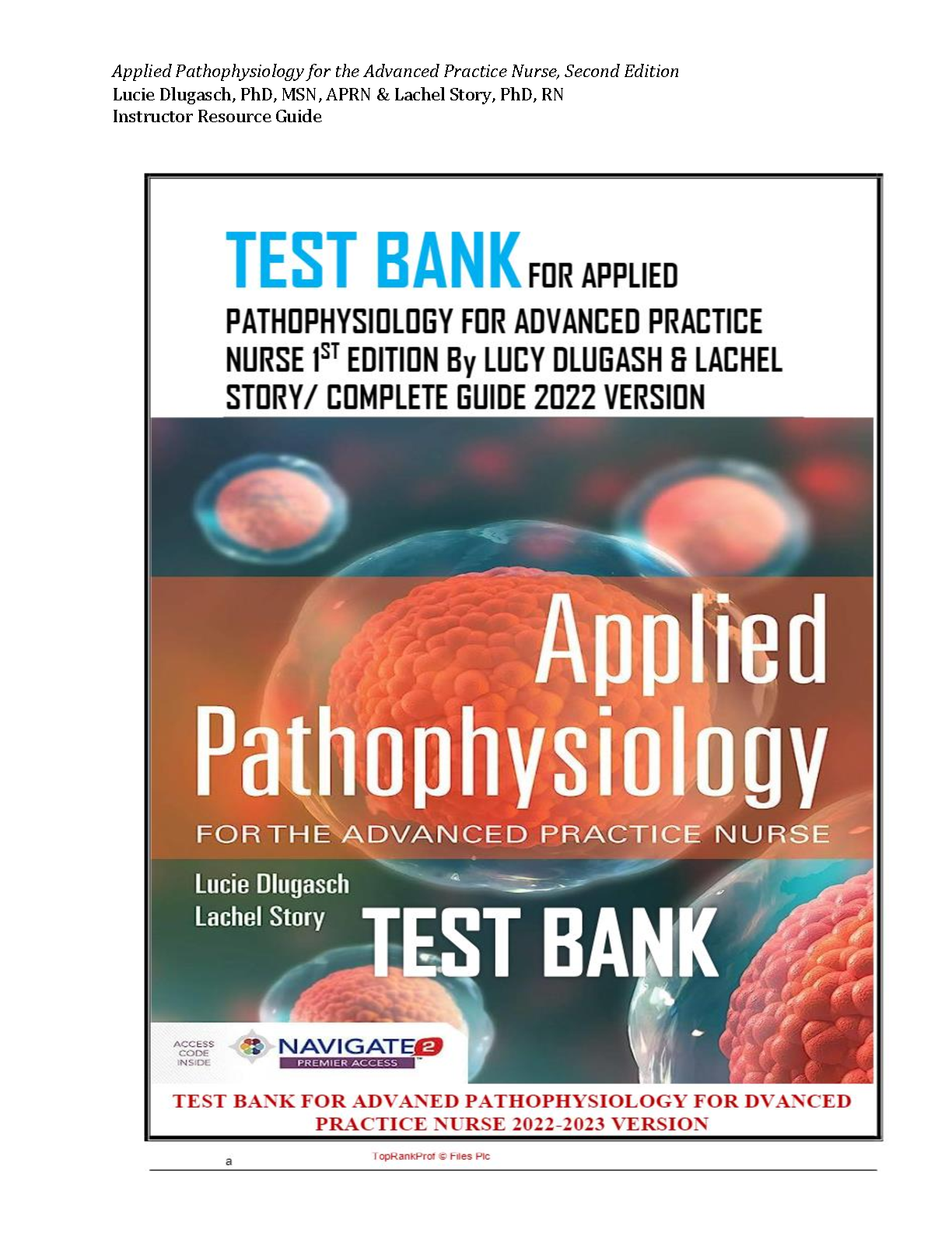 This Test Bank provides comprehensive study materials for Applied Pathophysiology for the Advanced Practice Nurse, 1st Edition, by Lucie Dlugasch and Lachel Story. Prepare effectively for exams and achieve top grades with this complete guide, including detailed answers and explanations, designed to help students succeed on their first attempt and avoid resits. Ideal for the 2024/2025 academic year.