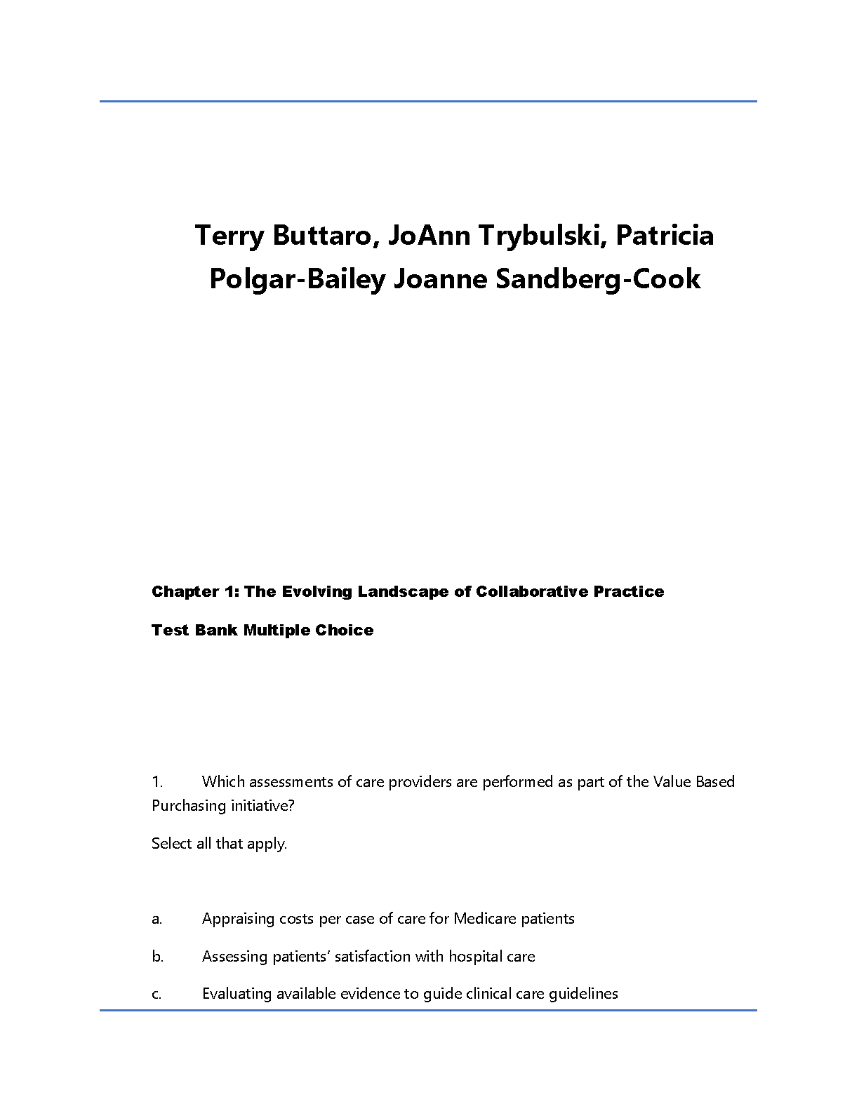 Ace your Primary Care exams with this comprehensive Test Bank for Buttaro, Trybulski, and Polgar's Primary Care: A Collaborative Practice, 7th Edition. This resource offers a wealth of practice questions mirroring the actual exam format, helping you master the material and achieve exam success on your first attempt. Prepare effectively and confidently, eliminating the need for resits.