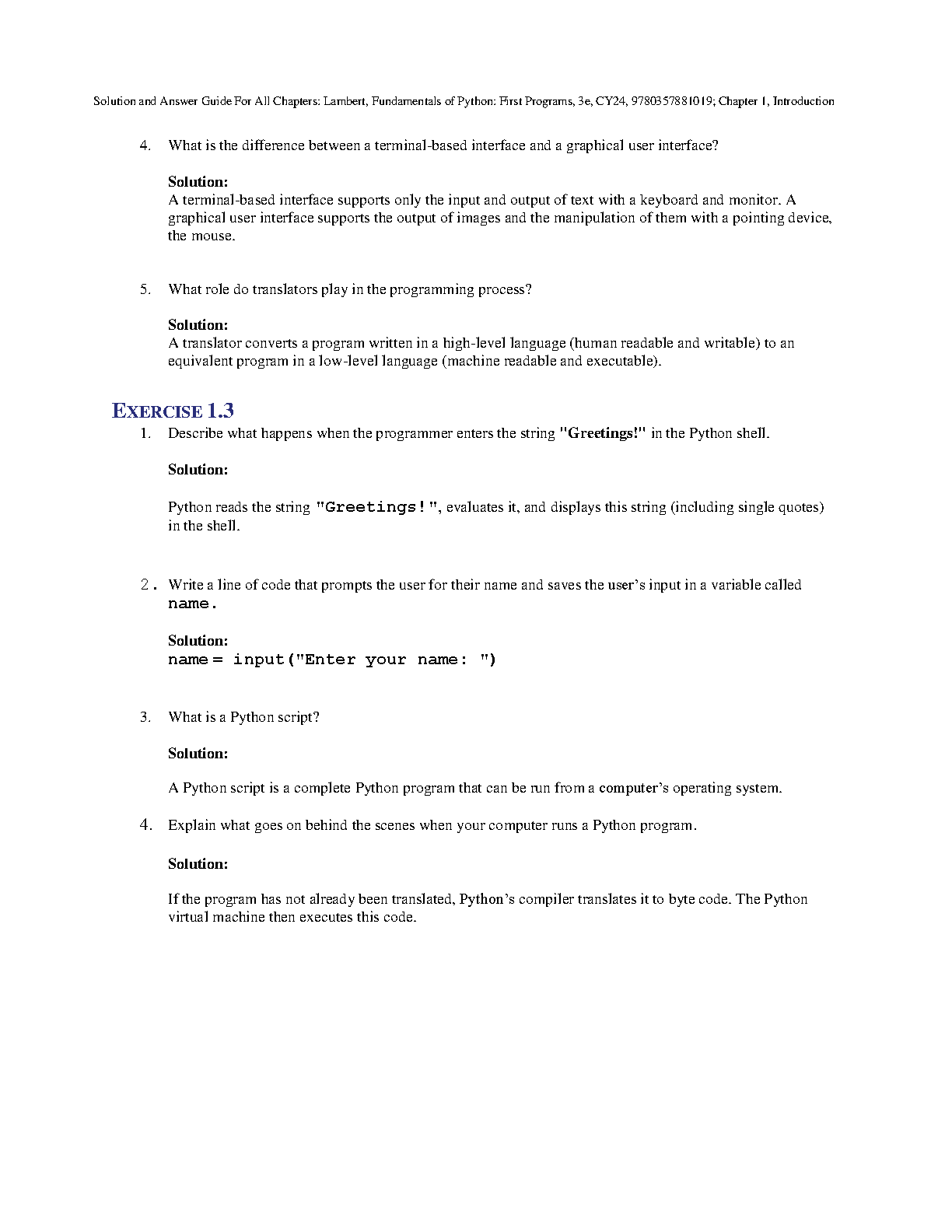 Lambert's Fundamentals of Python: First Programs, 3e Solution and Answer Guide - 2024/2025 Edition