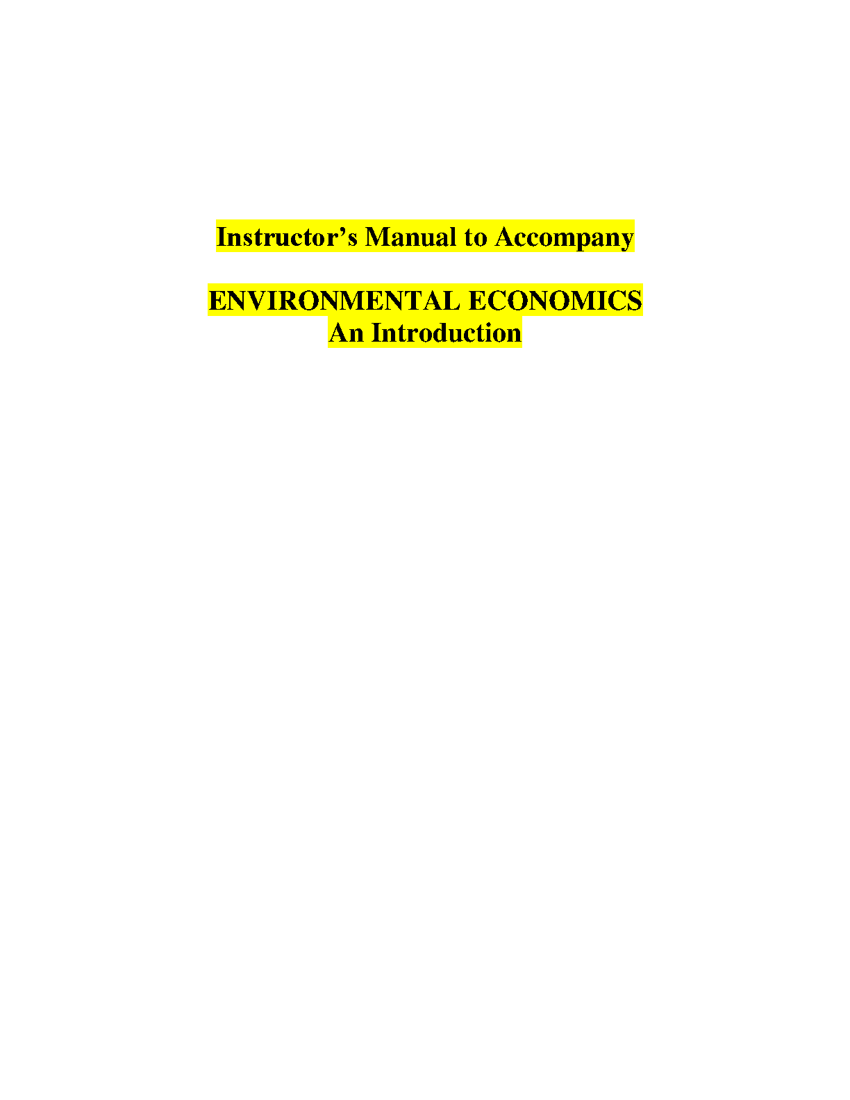 This comprehensive instructor's manual complements the textbook 'Environmental Economics: An Introduction' by Robert N. Stavins and Michael A. Toman. It provides valuable resources for educators, including supplementary materials, teaching tips, and solutions to enhance the learning experience. Designed to aid instructors in effectively delivering the course content, this manual is a valuable tool for fostering student comprehension and exam success.
