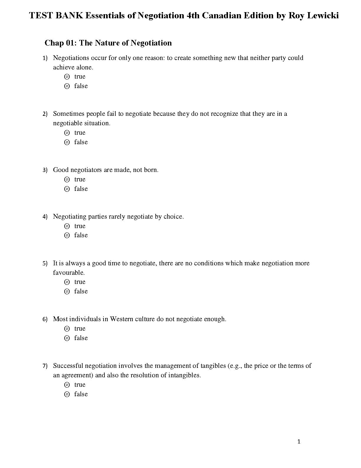 Master negotiation strategies with this comprehensive test bank for Roy Lewicki's Essentials of Negotiation, 4th Canadian Edition. Prepare effectively for your exams, understand key concepts, and achieve excellent results. This resource is designed to boost your understanding and help you pass on your first attempt.