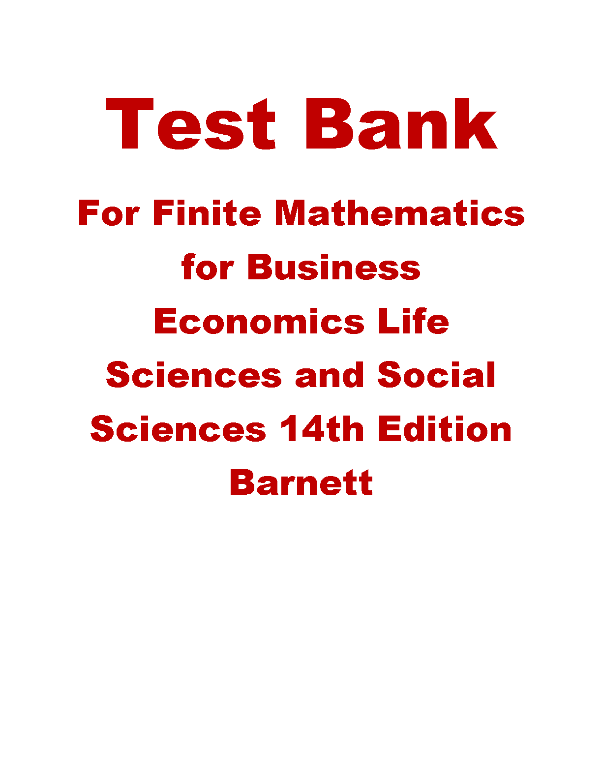 Test Bank for Finite Mathematics for Business, Economics, Life Sciences, and Social Sciences, 14th Edition by Barnett, Ziegler, Byleen, and Sobecki