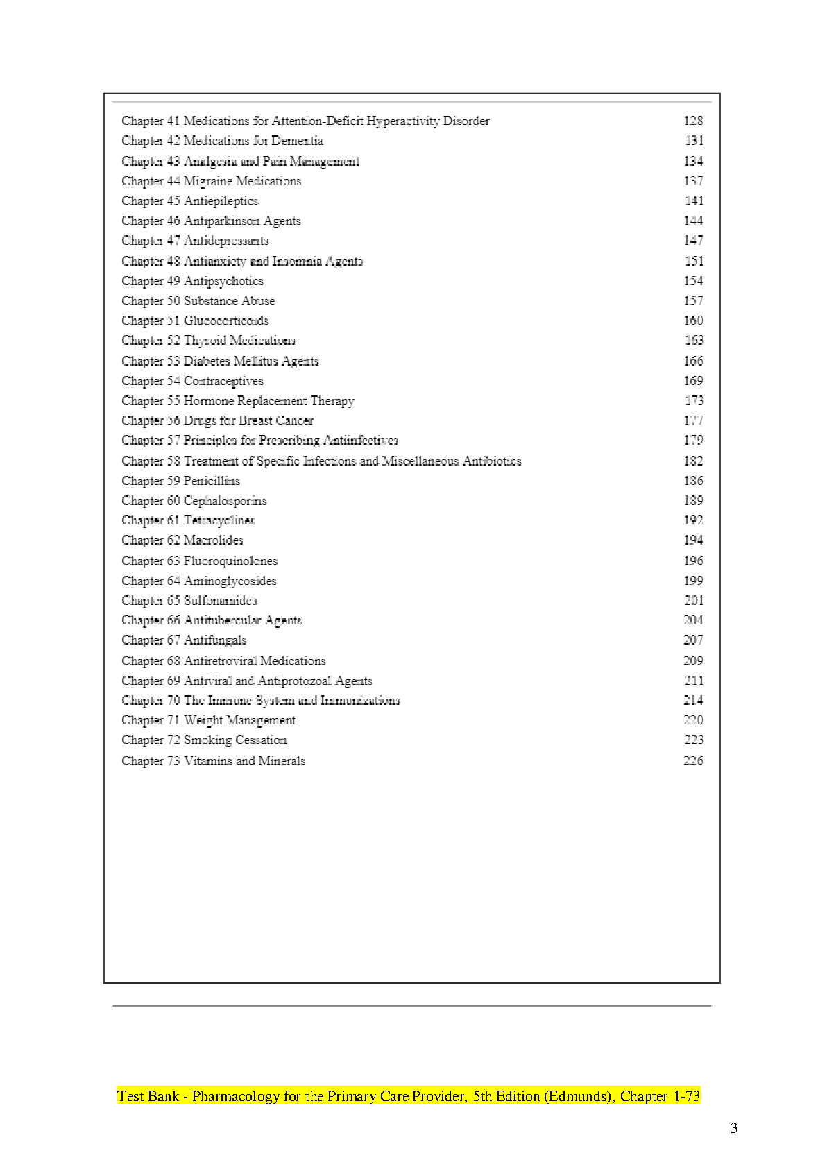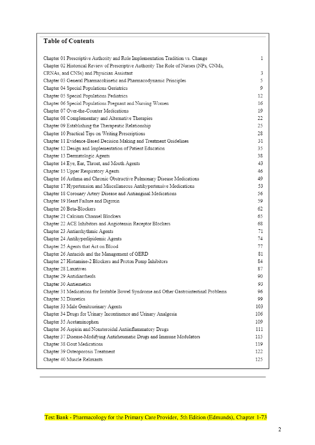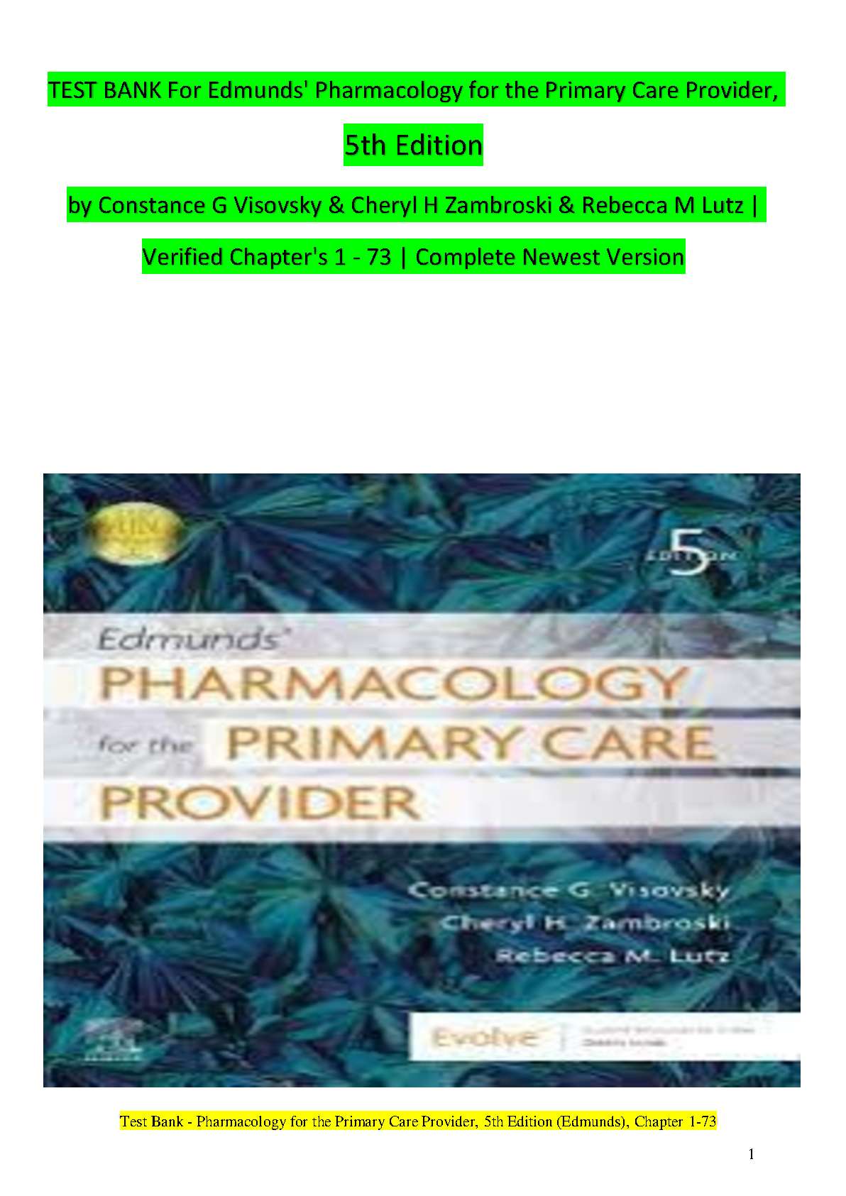 Ace your pharmacology exams with this comprehensive test bank for Edmunds' Pharmacology for the Primary Care Provider, 5th edition. Covering chapters 1-73, this resource provides a complete set of practice questions to help students master the material and confidently pass their exams on the first try. Avoid resits and build a solid understanding of pharmacology with this essential study tool.