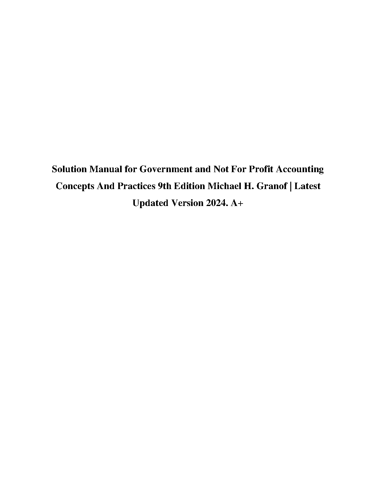 Ace your Government and Not-for-Profit Accounting course with this updated 2024 solution manual by Michael H. Granof. This comprehensive resource provides detailed solutions to end-of-chapter problems, ensuring you understand the key concepts and improve your exam performance. Guaranteed to help you pass your exams on the first attempt!