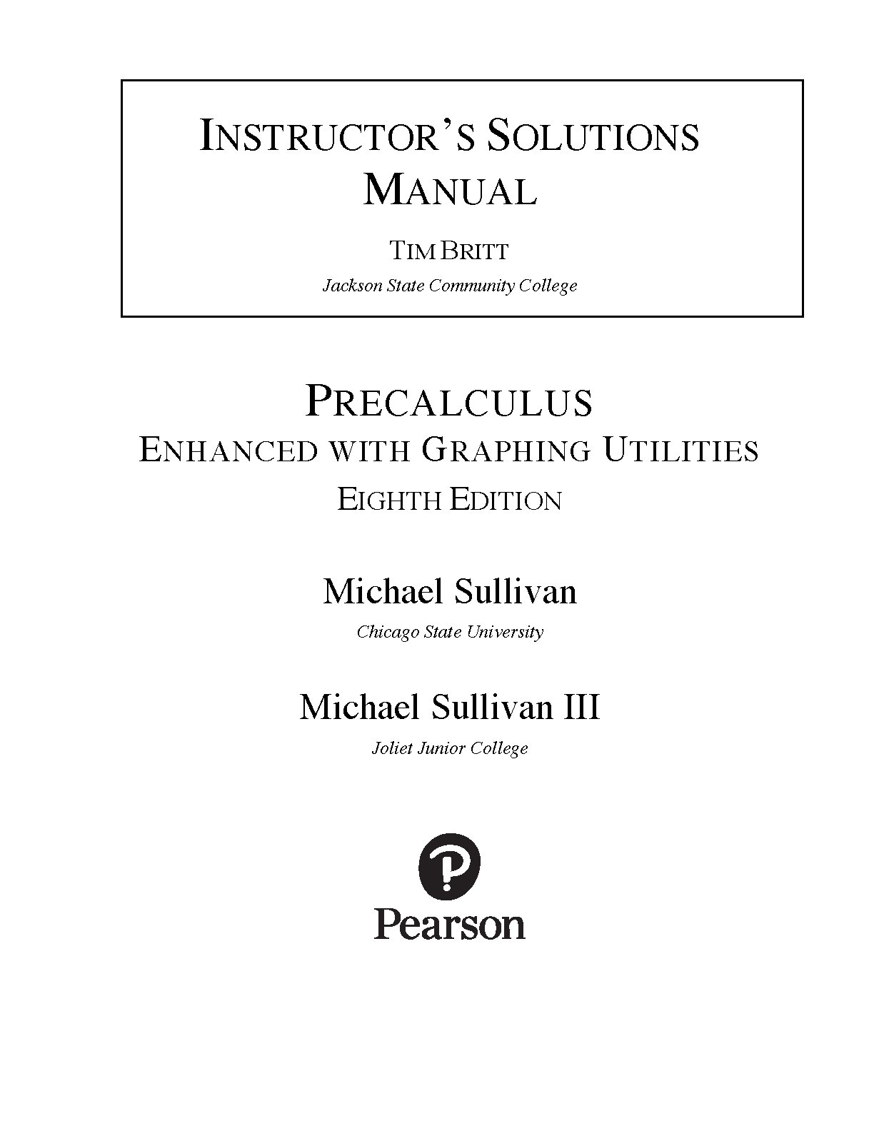 Instructor's Solutions Manual for Precalculus Enhanced with Graphing Utilities, Eighth Edition by Michael Sullivan and Michael Sullivan III